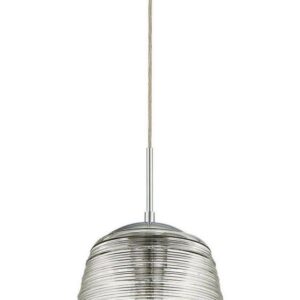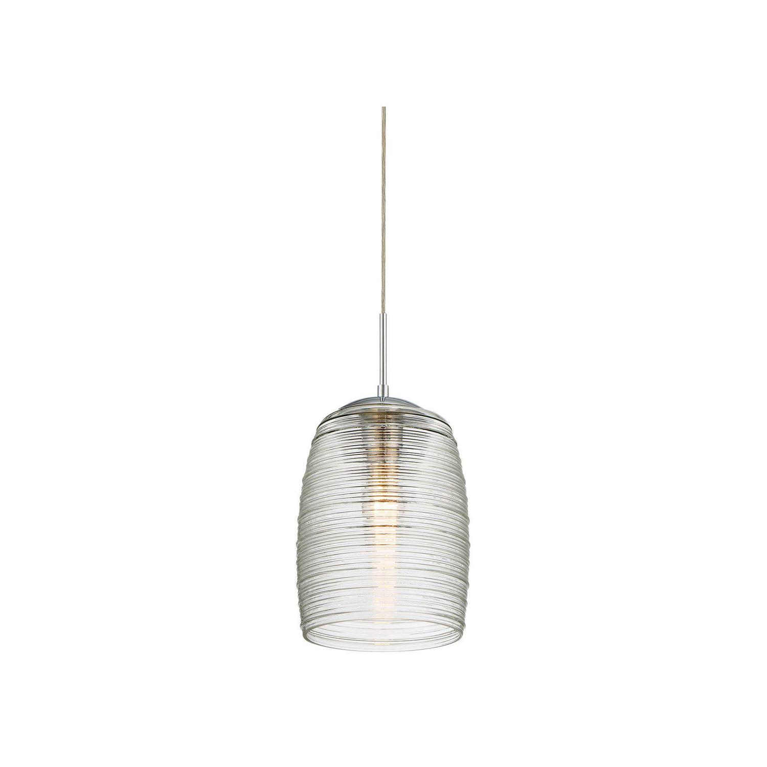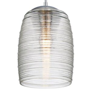 This simple yet striking and energetic modern mini pendant features a beautiful spun clear glass jar shade around its single light. The hardware and canopy made of steel glisten in dazzling polished chrome finish, perfectly complementing the glass. A vintage style Edison tube bulb is recommended for this fixture; available separately.