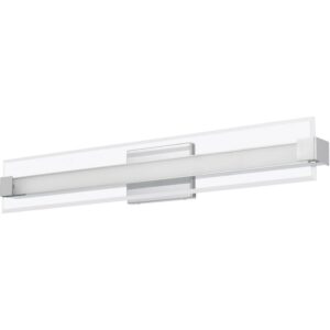 The Salon collection is modern minimalism at its finest. Clear beveled glass floats in the foreground, while a sleek integrated LED radiates from behind. The layered components are secured by discreet end brackets to a glossy backplate which are both finished in polished chrome for a contemporary shine.
