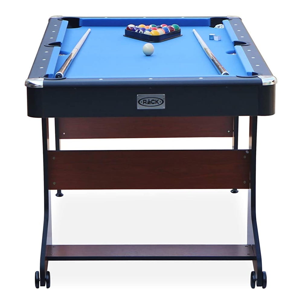 RACK Drogon 5.5 Foot Folding Classic Billiard Pool Table Game, Blue/Brown
