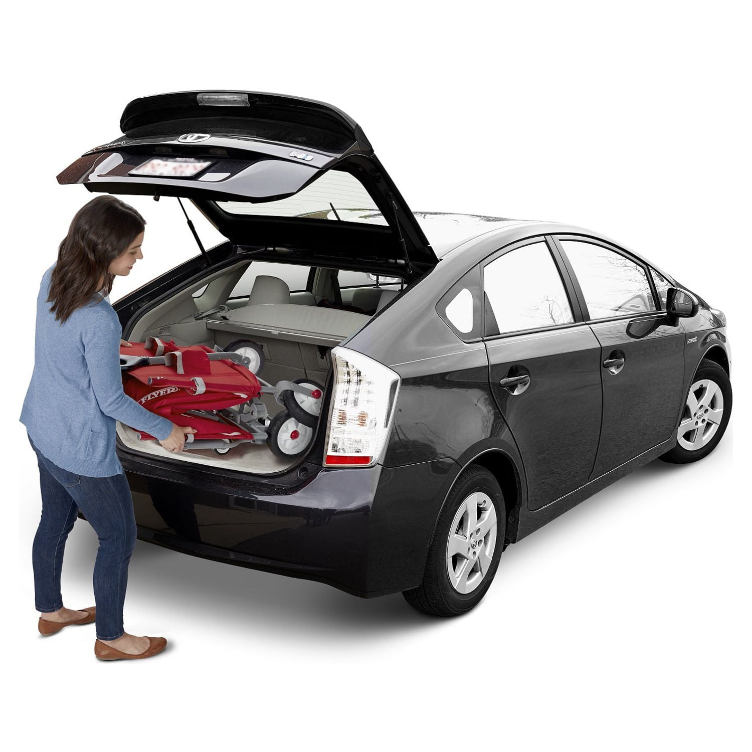 Radio Flyer’s 3-in-1 Tailgater Wagon with Canopy is designed as a full-sized, EZ fold wagon for kids and additional cargo storage. The stow away cooler caddy provides extra space for all tailgating needs! With an easy one hand fold, you can take or store the wagon anywhere! The high seat backs and thick padded seats with seat belts provide a comfortable ride, while the UV canopy protects from the sun. The canopy can be stored in the rear storage pouch and the canopy poles retract into the wagon frame when unused. The safety straps and zippers transform the wagon into bench seating. The DuraClean fabric can be easily wiped clean and features 2 front cup holders. Maximum weight capacity 150 lbs. in wagon and 50 lbs. on cooler caddy. For kids 1 ½+ years.