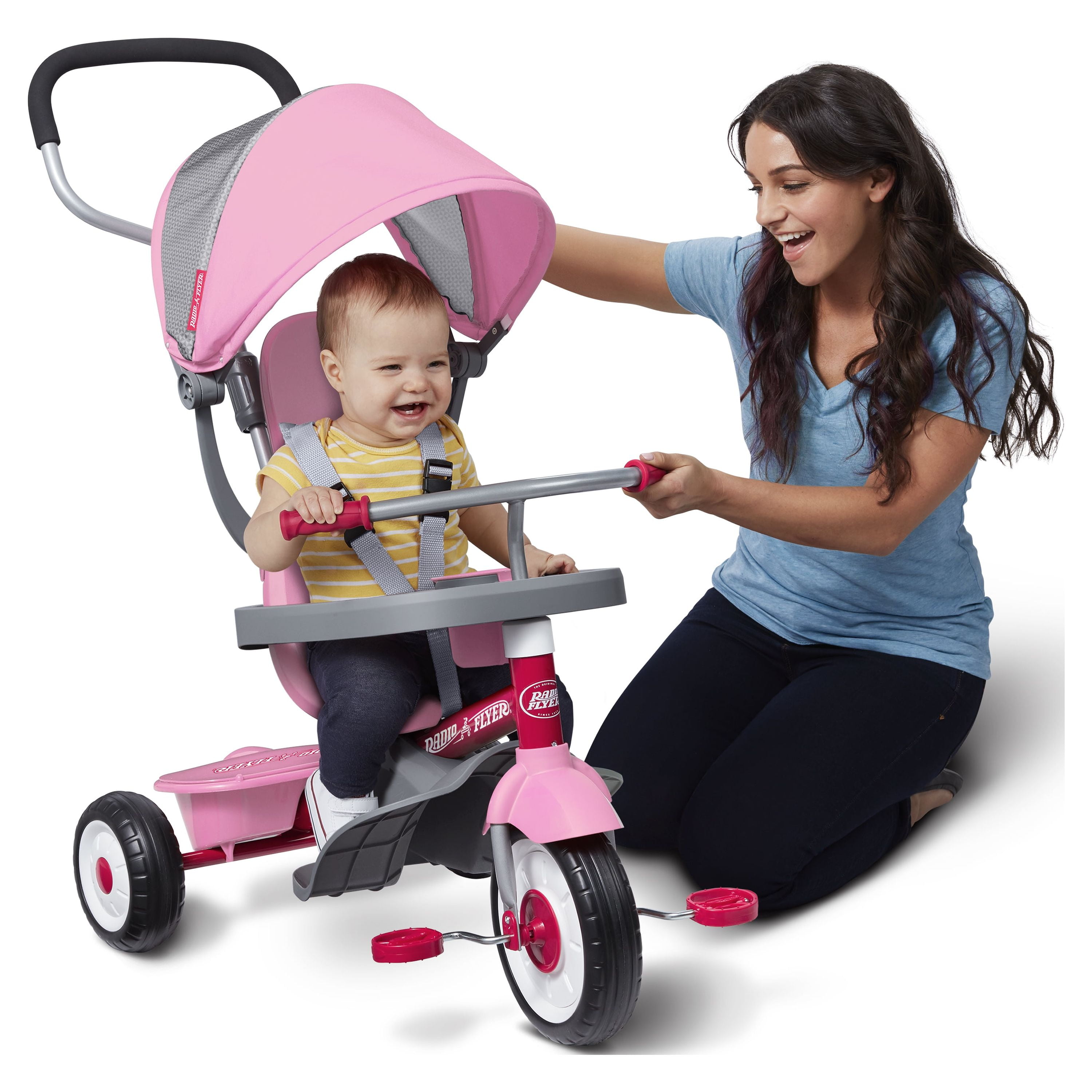 Radio Flyer 4-in-1 Stroll ‘N Trike Infant and Toddler Tricycle Stroller, Pink