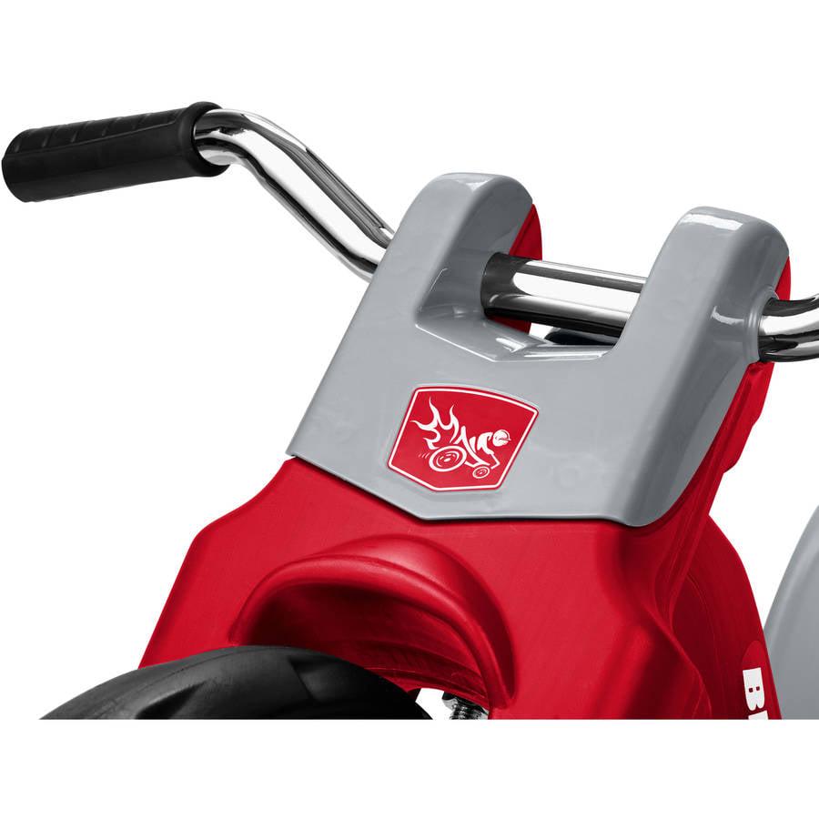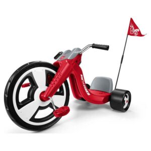 Introducing Radio Flyer’s Big Flyer Sport! This is the performance trike designed to be your child’s favorite new ride. The Big Flyer Sport is a chopper style tricycle with sleek racing design. It features a large, direct drive 16 front wheel that can be pedaled both forwards and backwards. It also features an adjustable seat that will grow with your child. It comes complete with chrome handlebars and a removable racing pennant. Maximum weight capacity 65 lbs. For ages 3-7 years.