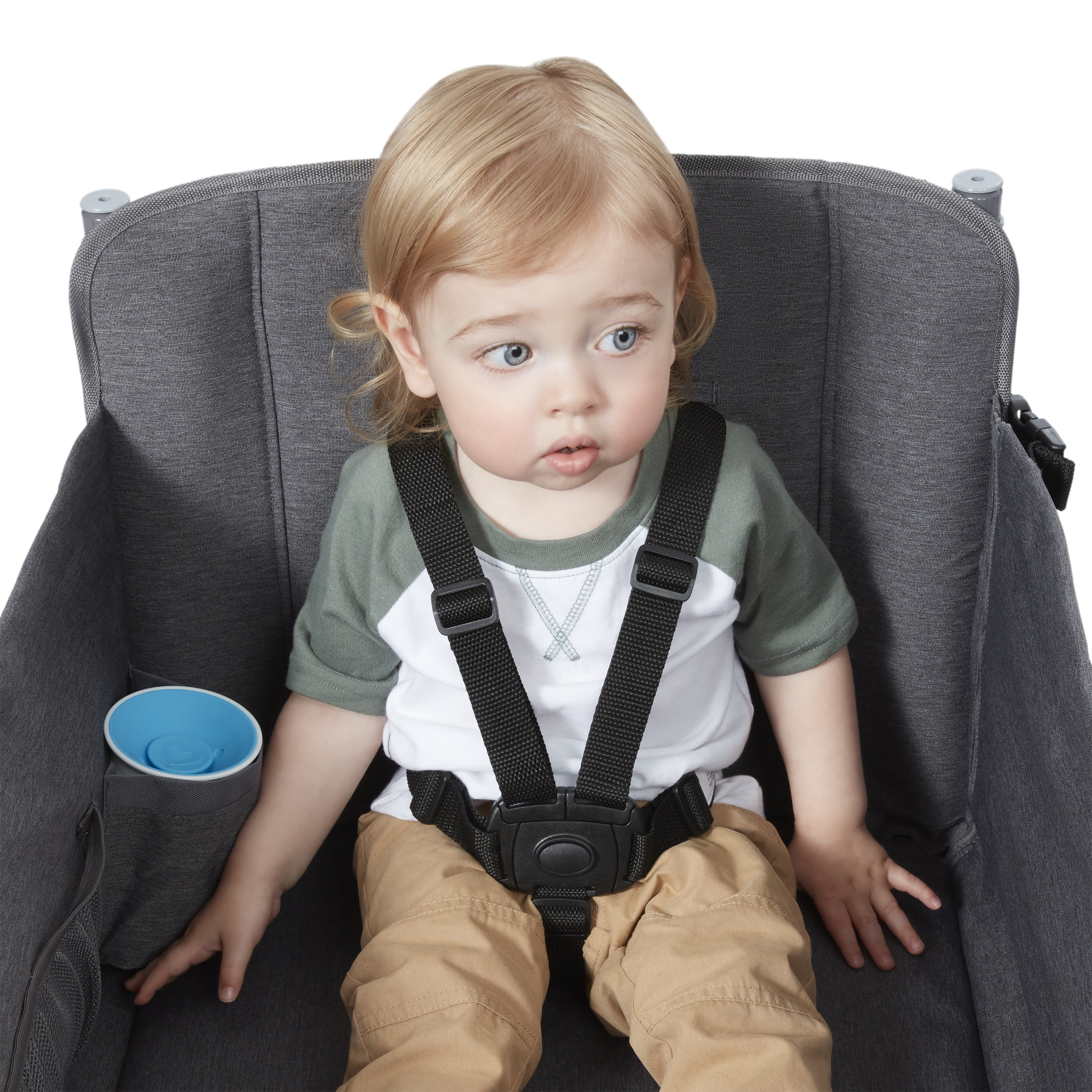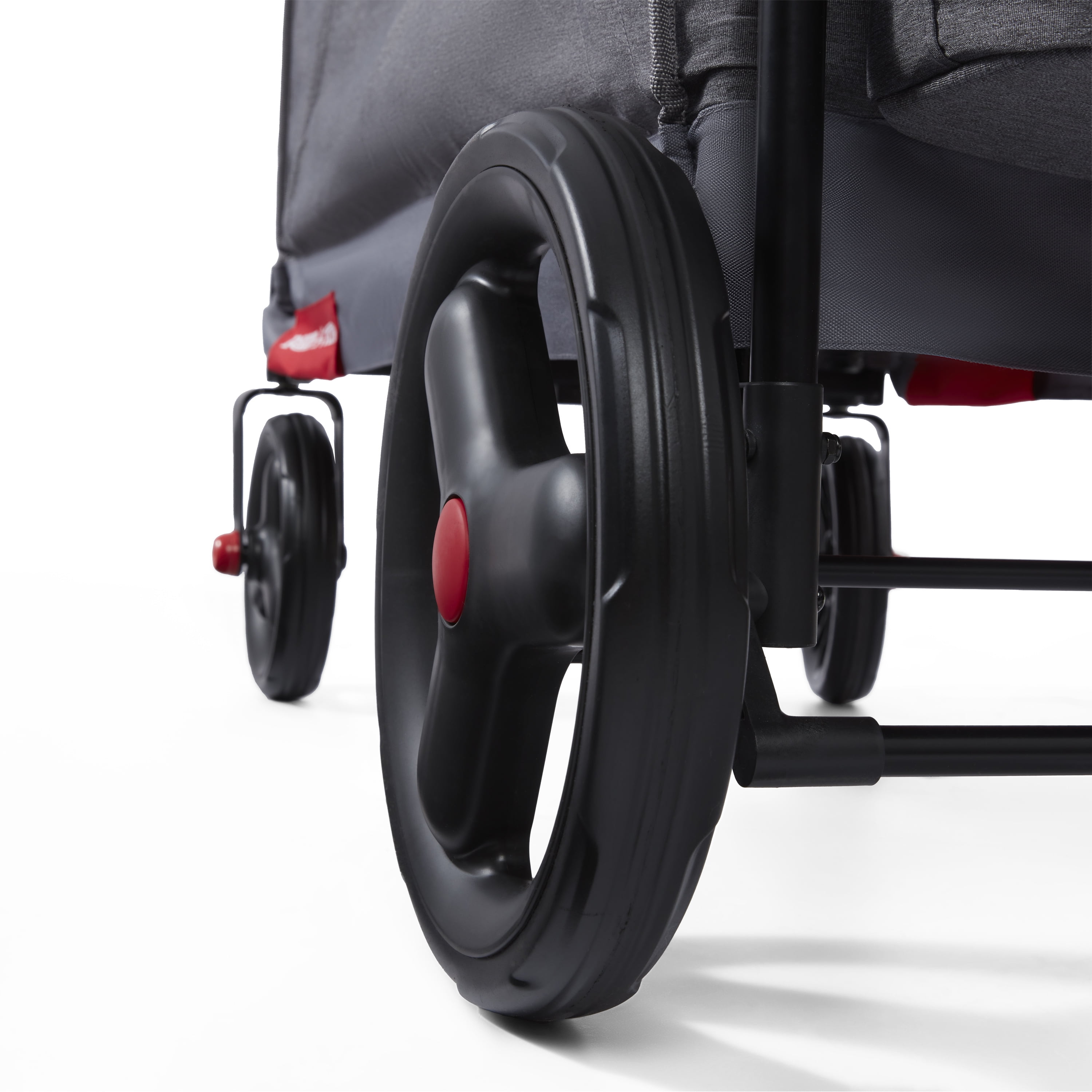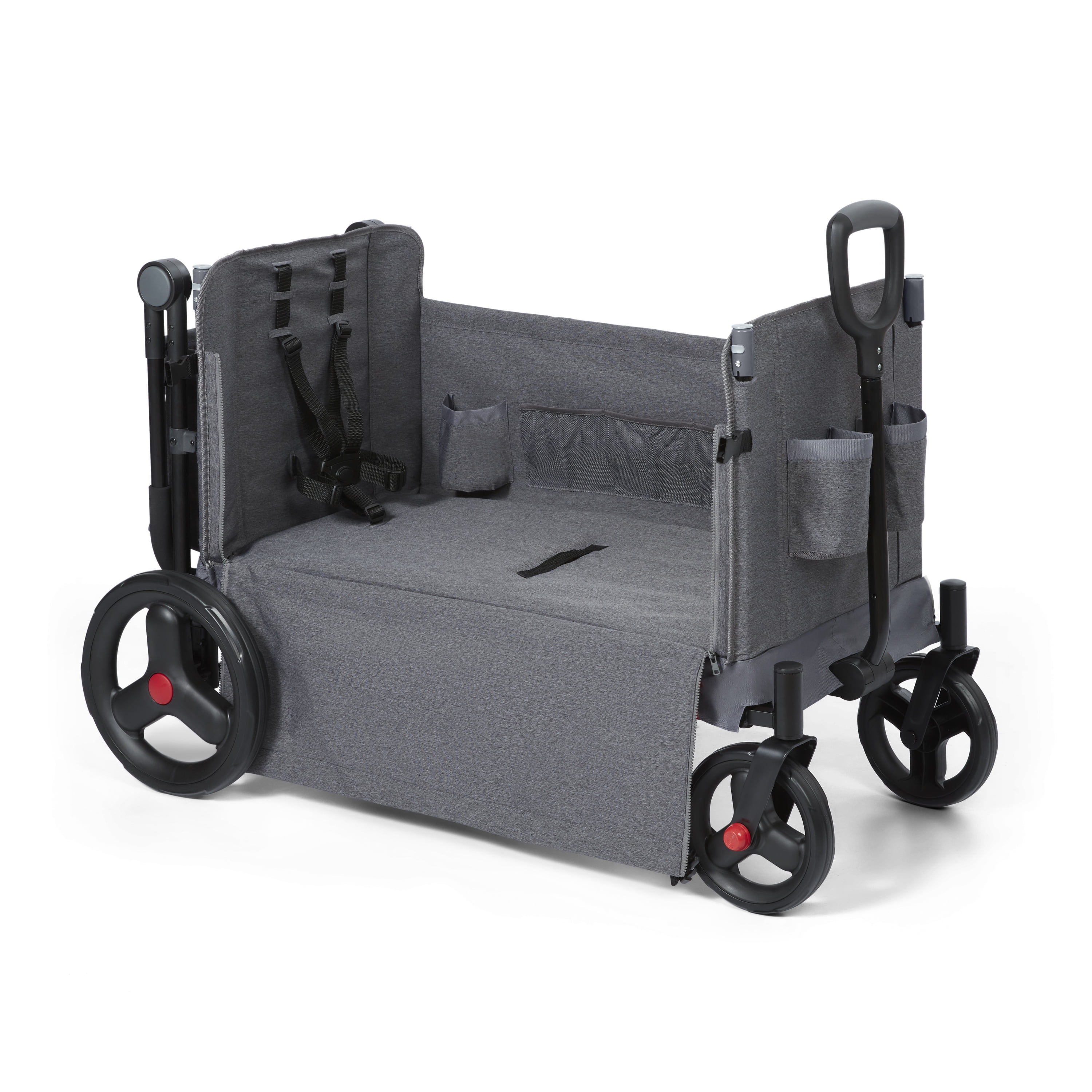 The Journey Stroll ‘N Wagon® brings comfort to every stroll! Ideal for families on-the-go, this wagon can be push or pulled. The Never Fall™ pull handle stays upright in the front and the push handle adjusts to your height. When not in use, the Journey Stroll ‘N Wagon® easily folds up for storage. Keep little ones as young as 12 months safe and comfortable with two 5-point safety harnesses, internal storage pockets, UV protection canopy, and a rear brake. Thoughtfully designed parent features like cup holders, XL rear storage bag, and the push bar parent caddy make this the ideal vehicle for your whole family. The side zips down for stationary bench seating or easy entry. It also features DuraClean® 2.0, our highest quality fabric, which is durable, easily cleaned and made to last. Maximum weight capacity 120 lbs. For toddlers and kids 1+ years.