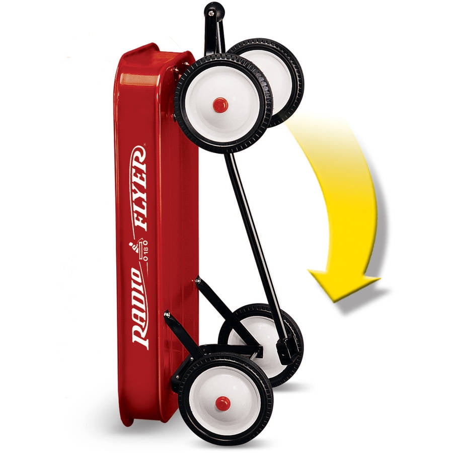 A classic symbol of American childhood Extra-long handle folds under for easy storage 10-inch durable steel wheels with real rubber tires Great to use in the garden! Assembly required, instructions included Dimensions: 39.57″ x 17.56″ x 14.37″ Maximum weight capacity 150 lbs. For 1 1/2+ years