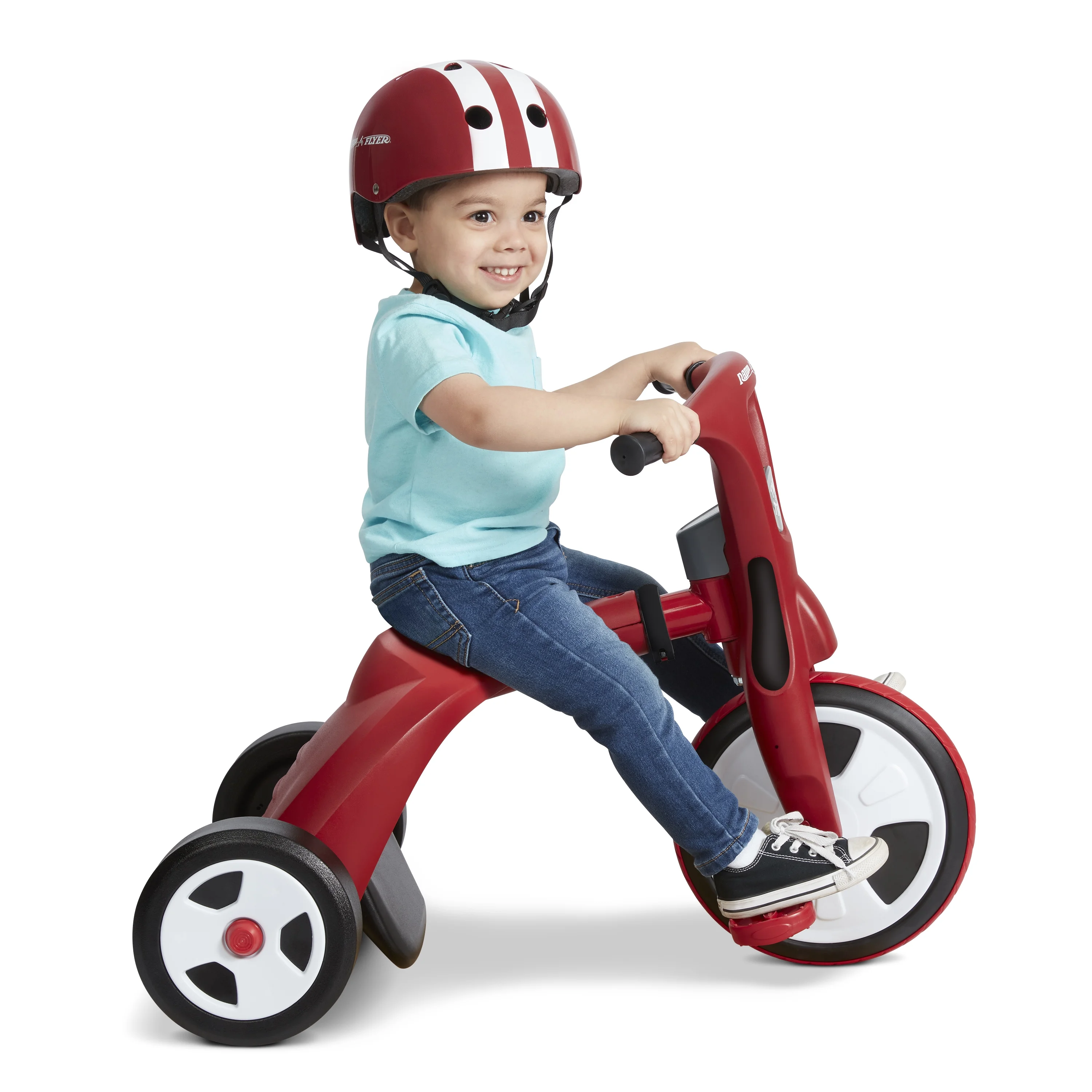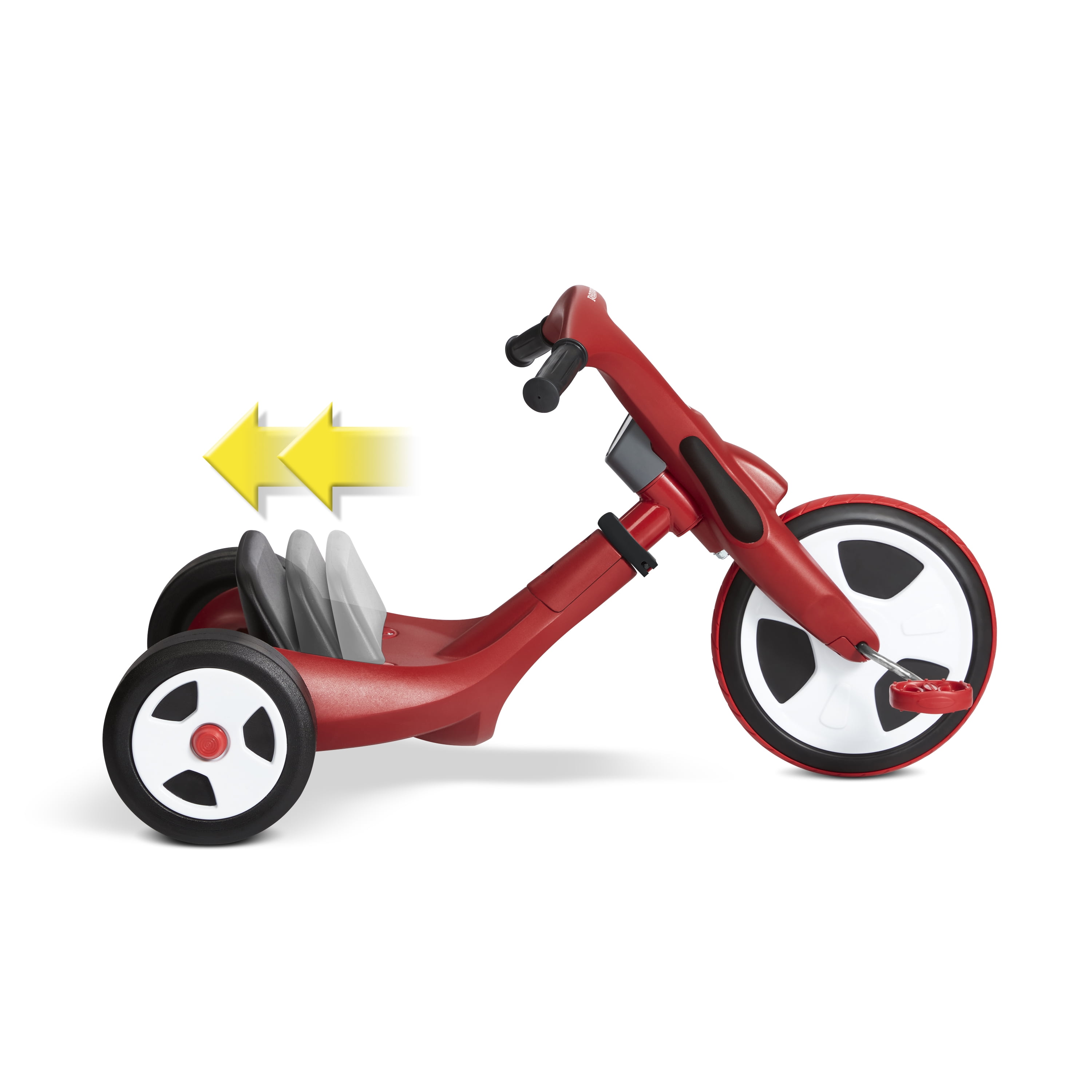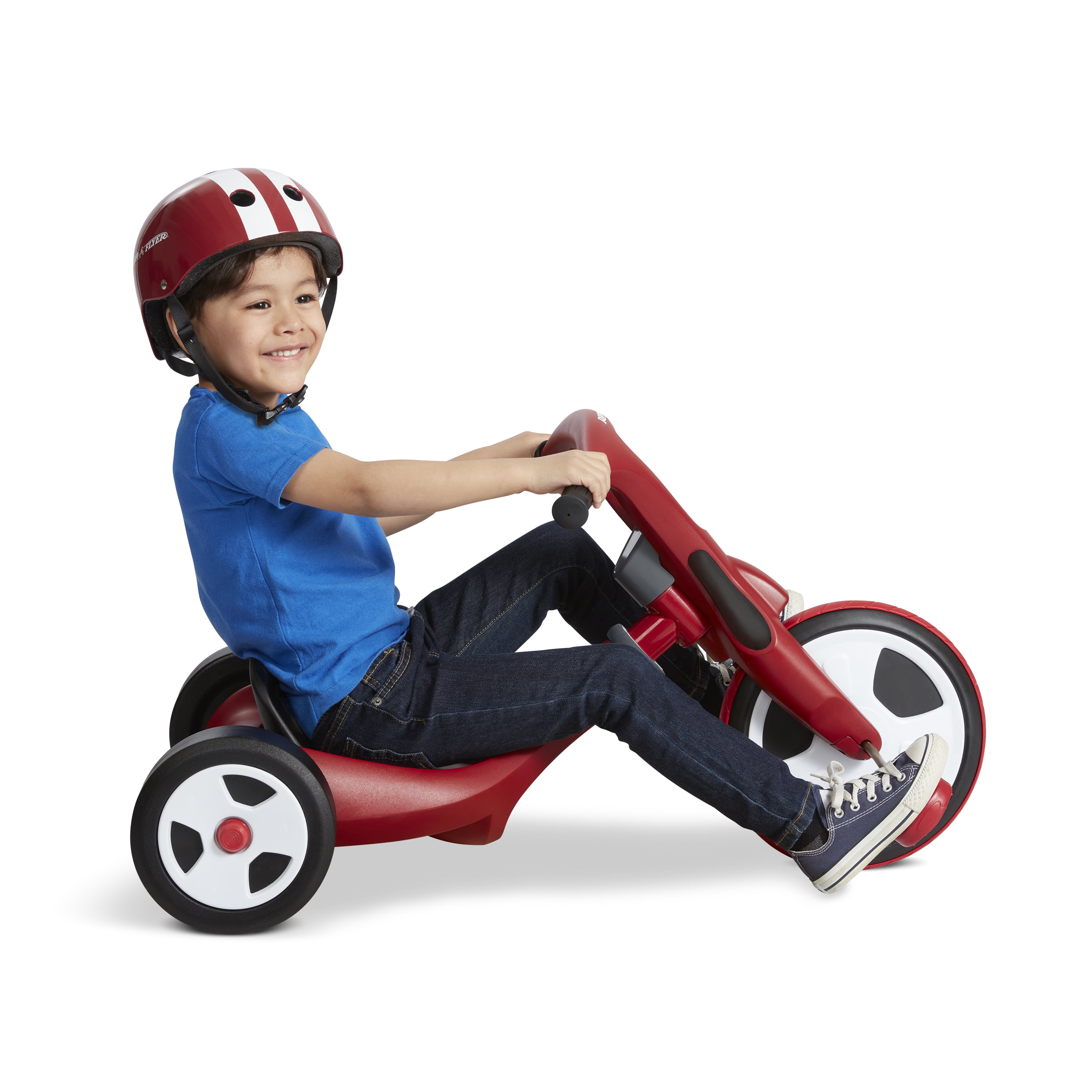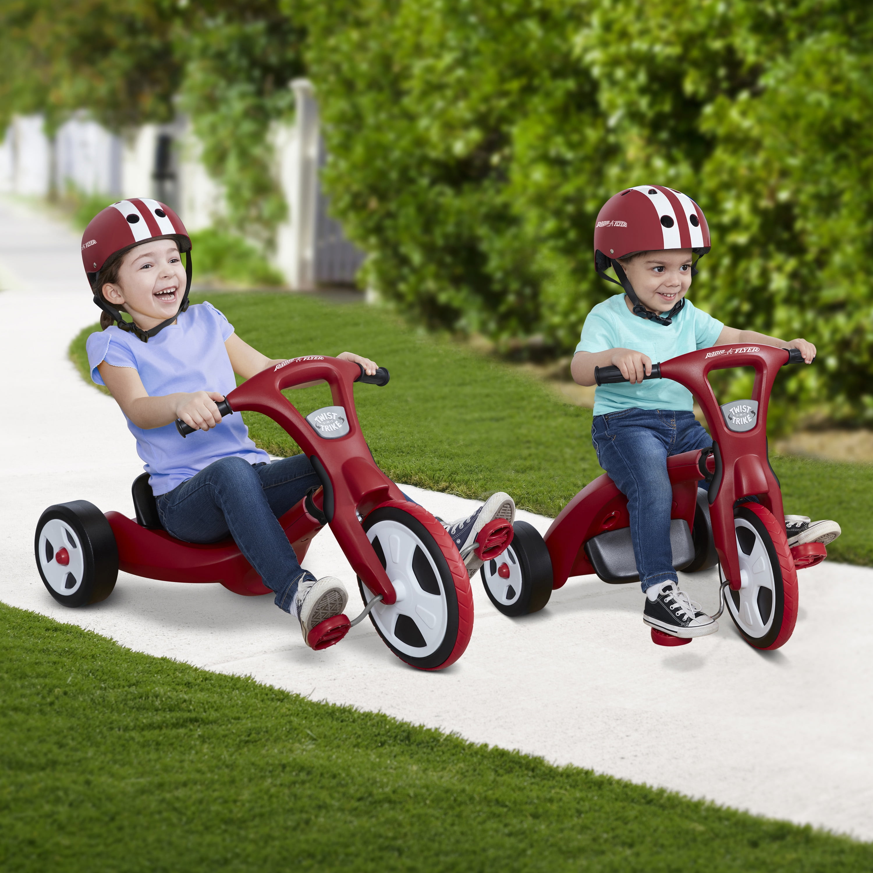 Two trikes in one – ride as a trike or a chopper for years of fun! Tool free transformation – Simply unlock & twist the frame or front wheel to switch modes – no tools needed! Adjustable seat in chopper mode grows with your child Traction tread on front wheel Comfort hand grips Unisex design for all to enjoy For boys and girls 2-7 years If you have any questions regarding your product, please contact Radio Flyer Customer Service at 1 (800) 621-7613 or email us at [email protected].