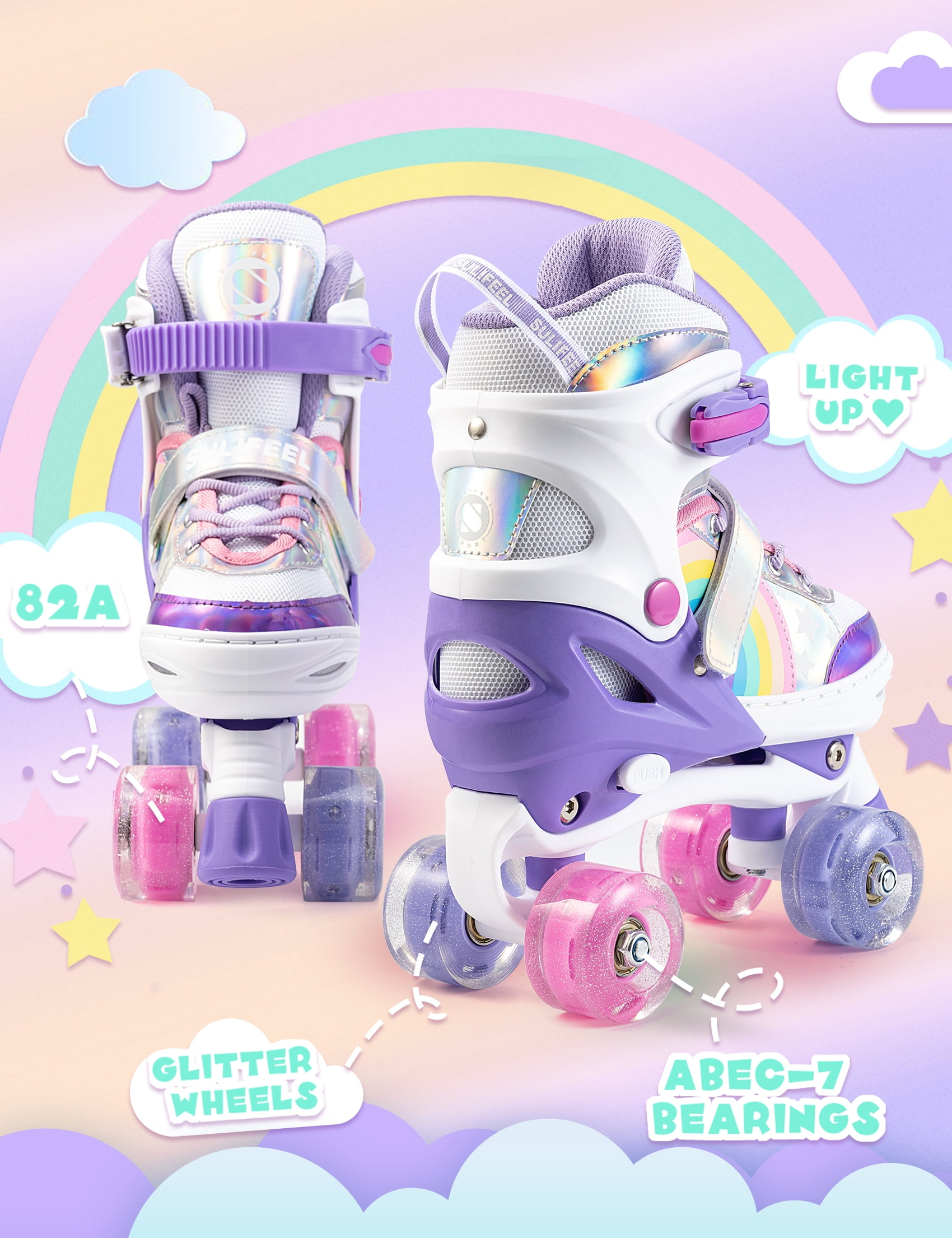 2PM SPORTS Rainbow Unicorn Adjustable Roller Skates for Kids with Light-Up Wheels for Girls and Boys, Medium Purple (1.5-5 US)