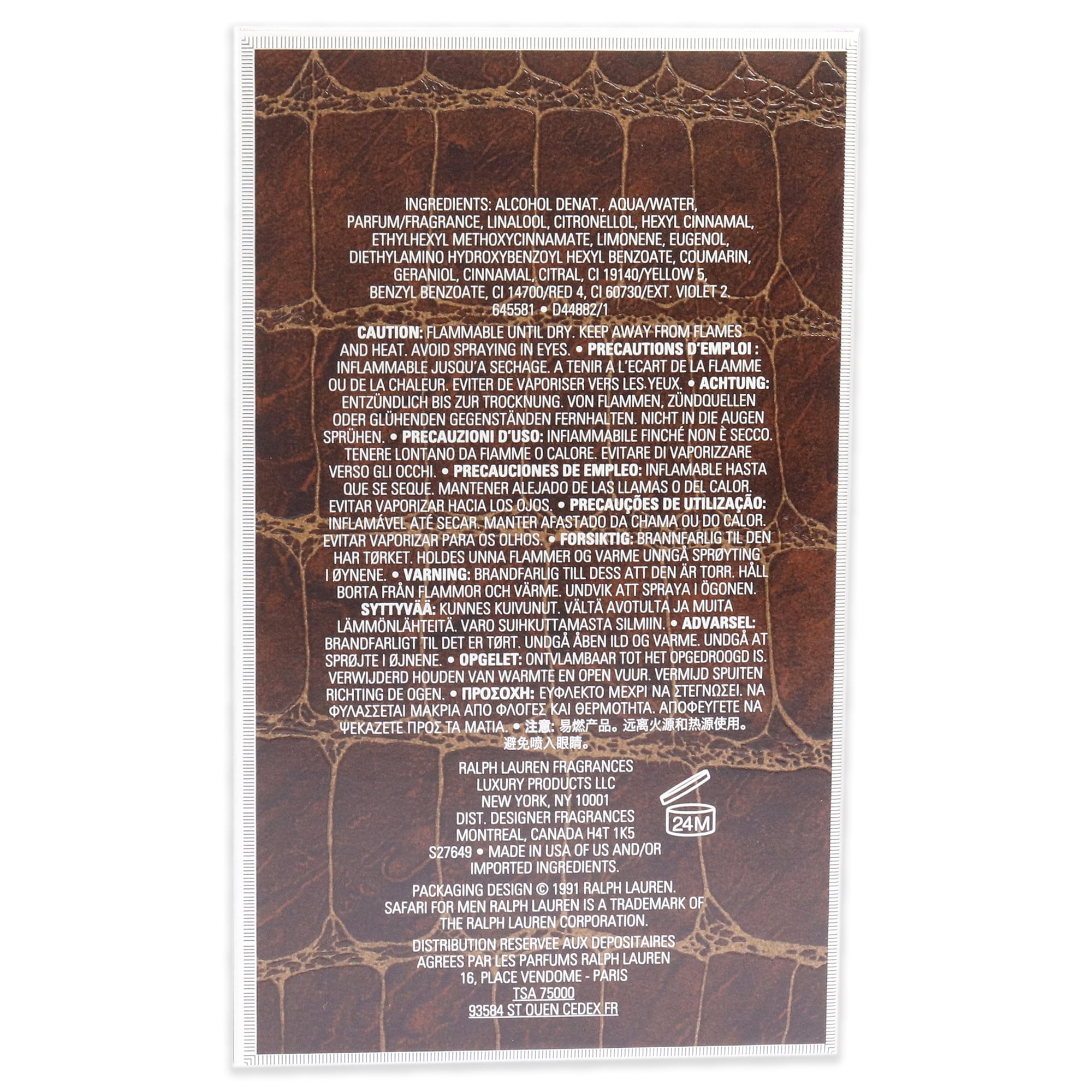 Introduced in 1992, Ralph Lauren Safari Eau De Toilette will radiate a sense of adventure, intrigue, and pursuit. This woodsy fragrance has a subtle blend of citrus and eucalyptus with leather and woodsy notes. It’s very manly and rich, yet it’s subtle enough to wear to a variety of casual occasions. For the active man on the go, Safari is an excellent choice for daytime use.