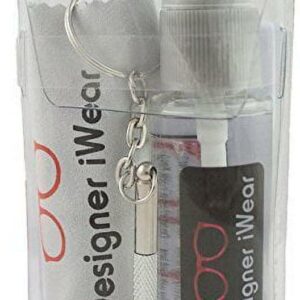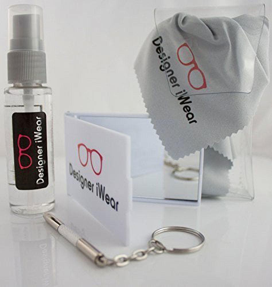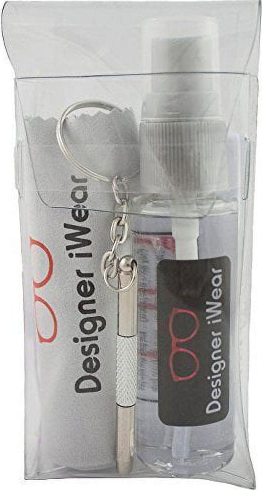 – GREAT VALUE- FREE CLEANING KIT. Includes: a Designer iWear 1 ounce spray bottle, mirror, screw driver/key chain, and a folded microfiber cloth.