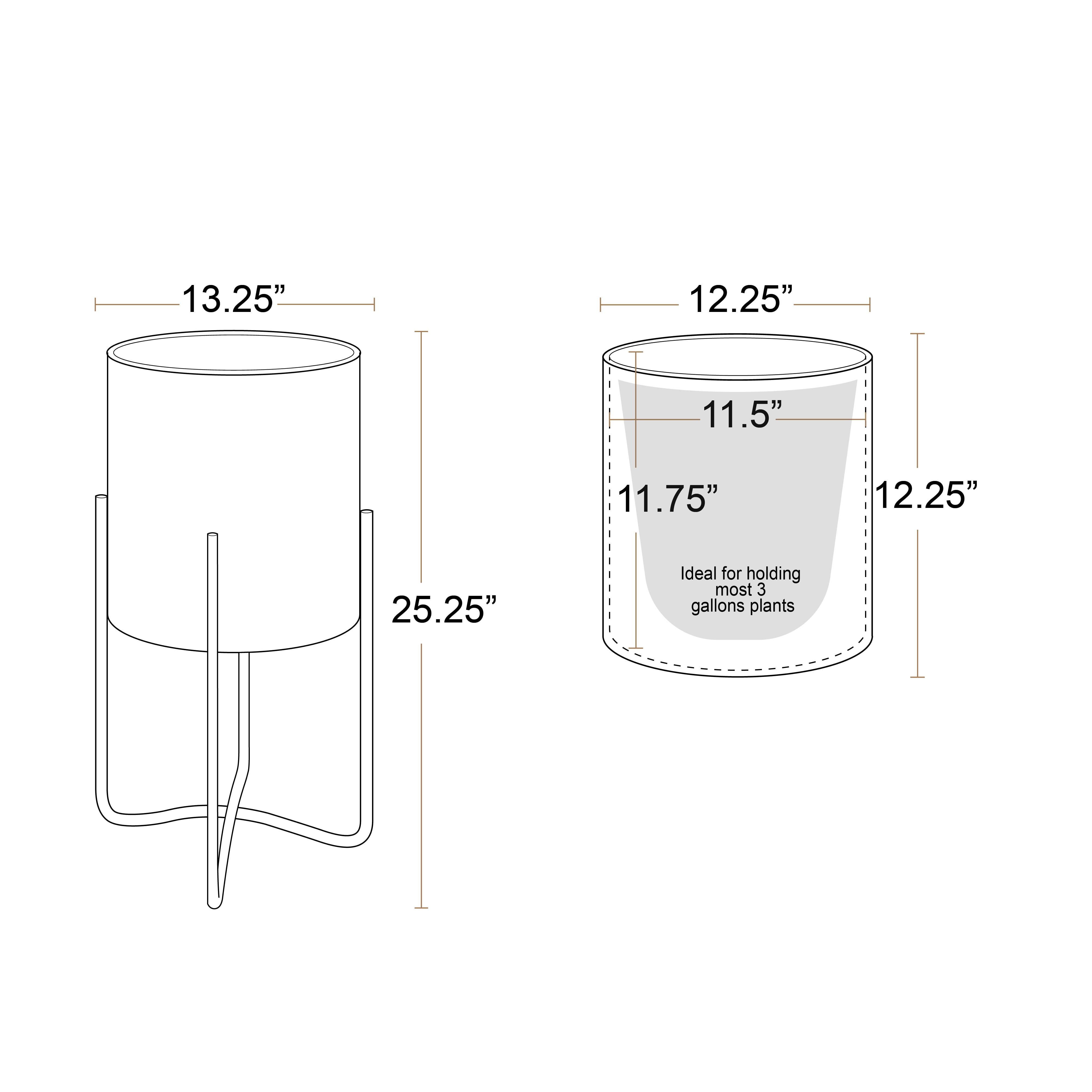 Made of durable metal materials Modern white color Gold metal base No drainage hole – not for direct planting Sits on 4 curved metal legs