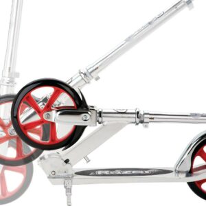 Razor A5 Lux Kick Scooter – Red/ Silver, Large 8 Wheels, Foldable, for Riders up to 220 lbs