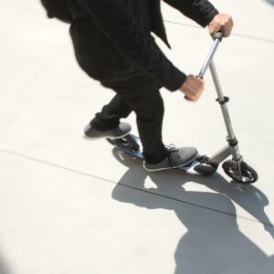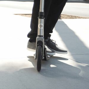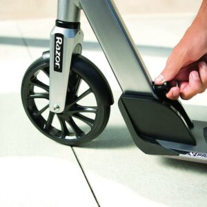 The Razor A5 Prime premiers the latest in high-style scooter design. Featuring a durable gunmetal, anodized aluminum frame, hydro-formed downtube with the latest, patent-pending, anti-rattle system, an extra-long, extra-wide extrusion profile deck and soft rubber prism-shaped grips ensuring comfort on longer rides. The A5 Prime is quickly and easily foldable, making it simple to carry and store and features a retractable, center kickstand to help hold the scooter upright when not in use no need to lean or prop up. The exclusive, spoked wheel design with extra-large, urethane wheel build combine to make the A5 Prime the most sophisticated and modern scooter on the market, bringing comfort and high-end performance to your ride