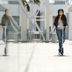 – Spoked, ultra-large 10 (254 mm), urethane wheels and super-strong, aluminum frame with patent-pending, anti-rattle handlebars, and folding mechanism, ensure the smoothest, quietest ride around.