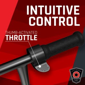 – Intuitive Control: Thumb-activated throttle, hand-operated front brake, and rear-fender brake put you in control of starts and stops.