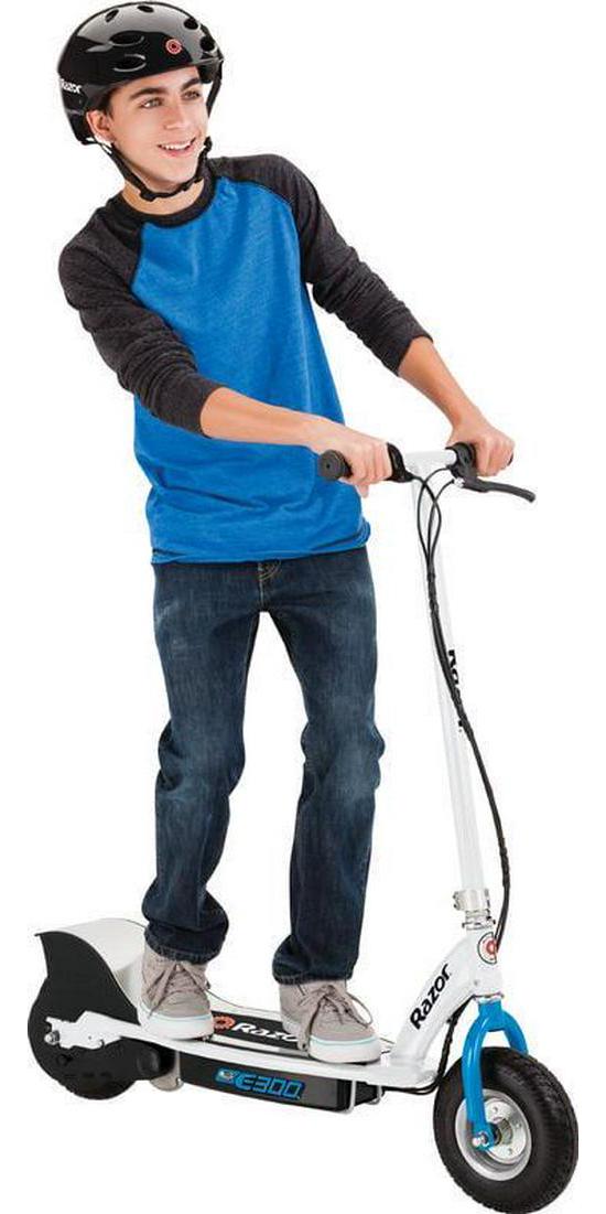 – With its super-sized deck and frame, the Razor E300 electric scooter is ready to roll for teen and adult riders up to 220 pounds(100 kg)