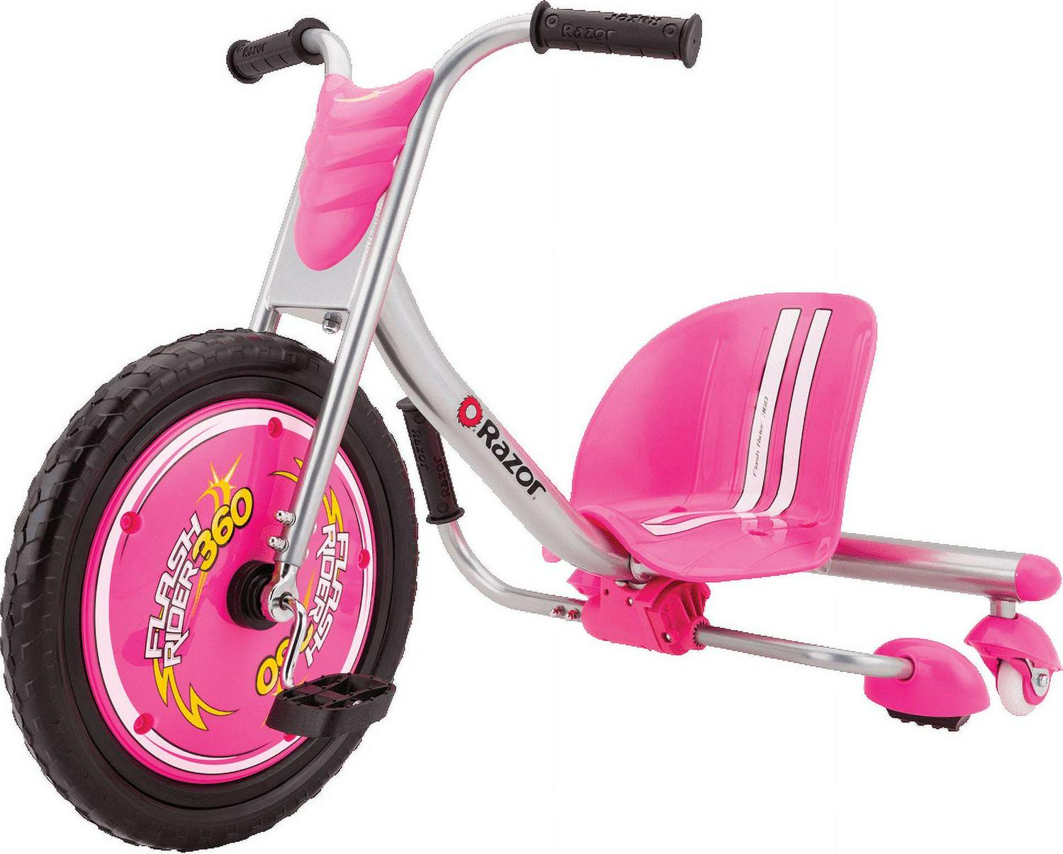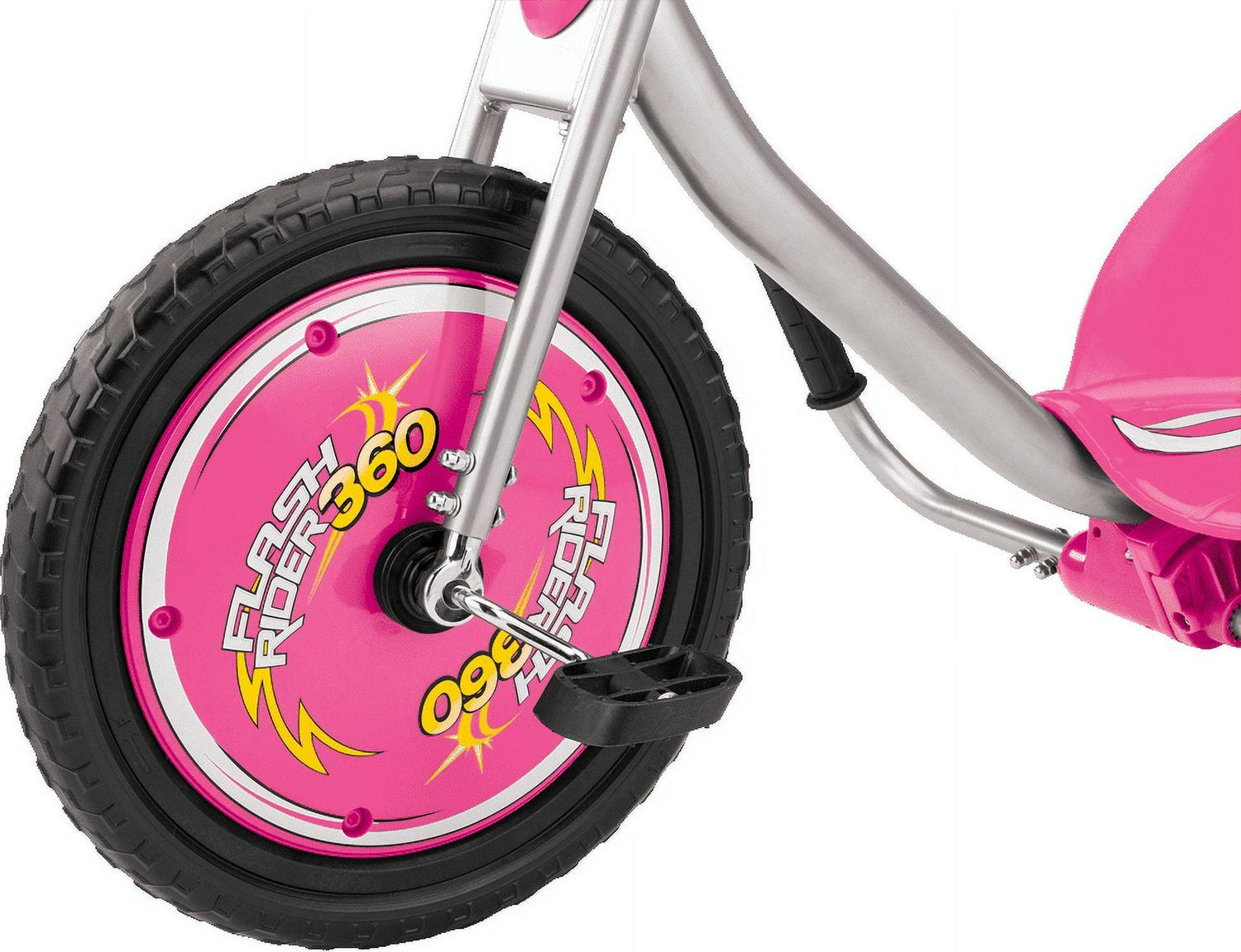 Razor FlashRider 360 Tricycle with Sparks – Pink, 16 Front Wheel, Welded Steel Frame Trike, Ride-On Toy for Kids Ages 6 and Up, Unisex