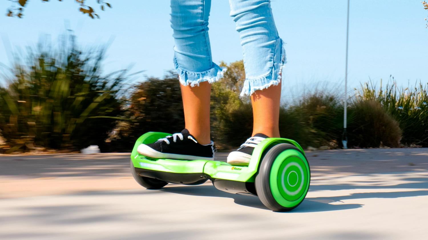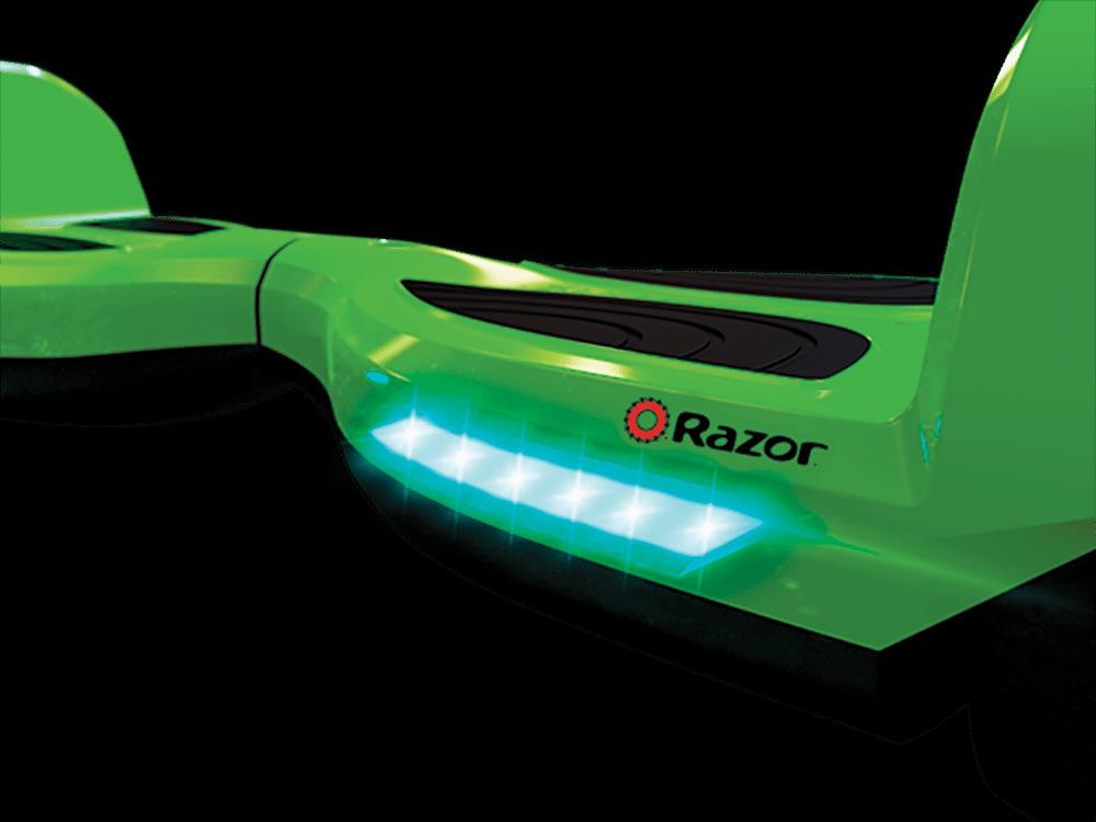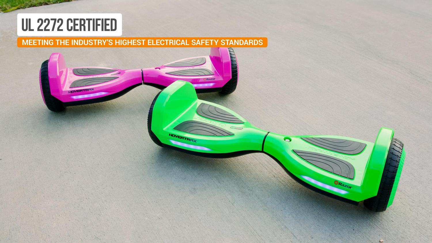 Great for beginners Razor’s ever-balanced technology and anti-slip footpads make it easier to learn how to ride a hoverboard choose either training or normal mode and go at your own pace. Light up your ride the multi-color led lighted wheel hubs and the blue front-facing led light bars to shine while you hover. From the brand you trust the patented Razor Hovertrax bights are UL 2272 certified, meeting the industry’s highest electrical safety standards.