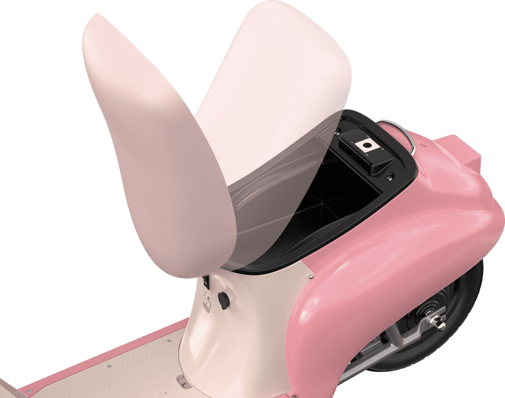 You’re all about style, retro or vintage, and the color story is just as important to you. With the Pocket Mod, the hub-driven electric motor powers riders up to 15 mph (24 km/h) in the default high speed mode. A high/low speed control switch allows the selection of the right maximum speed, up to 10 mph (16 km/h) in the low speed mode for younger children and beginner riders. With a secret storage compartment, dual kickstand, padded seat, and controls at your fingertips – it all adds up to an amazing ride. Sit back, relax, and enjoy the bliss.
