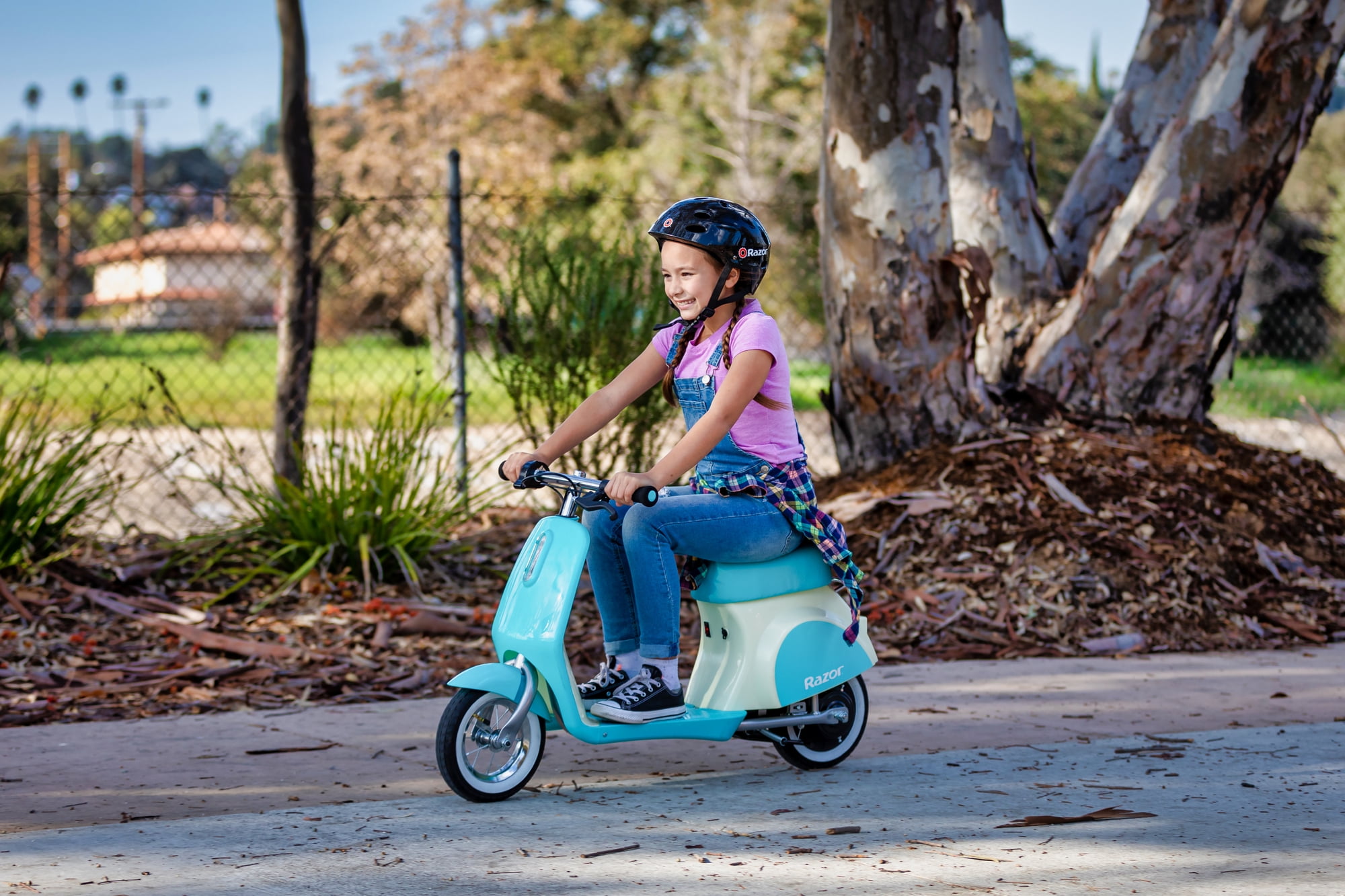 You’re all about style, we know that. And it doesn’t matter what age you are. The Pocket Mod Petite is Razor’s smallest miniature Euro-style scooter designed for younger riders age 7 and up. The 100-watt hub-driven motor delivers speeds up to 8 mph (13 km/h) and the 12V rechargeable battery provides up to 40 minutes of continuous ride time on a single charge. With the 10″ (255 mm) pneumatic tires, padded seat, twist-grip throttle control, and hand-operated brake, the ride on the vintage-inspired Pocket Mod Petite is as smooth as it is stylish.Always check local laws to see where and how particular Razor products may be ridden. An adult’s decision to permit a child to use these products should be based upon Razor’s recommendations and the child’s skills, maturity and the ability to follow rules. Product specifications subject to change.International DisclaimerThis Razor product is produced for sale in the United States and Canada. The Razor warranty for customers who intend to use it outside of the United States and Canada is not applicable. Razor products produced for and sold in international channels are warrantied as applicable in such foreign countries. Call +1 866 467 2967 or email [email protected] for more details regarding Razor products that require service, were purchased in the United States or Canada, and are now outside the United States or Canada. On these products, which require service, consumers are responsible for all costs including shipping, resulting taxes, duties of replacement parts and local power adaptors at the owner’s expense.Razor’s Smallest Pocket Mod – A vintage-inspired electric scooter scaled-down for riders age 7 and up, with a maximum weight of 110 lbs (50 kg).Authentic Styling – With its padded seat, twist-grip throttle control, and hand-operated brake, the Pocket Mod Petite is a miniature Euro-style scooter that looks like the real thing.Safe Better for Younger Riders – The 100-watt, high-torque, hub-driven motor boasts speeds up to 8 mph (13 km/h). Rear-wheel drive delivers better balance control and traction for a safer, more stable ride.Uninterrupted Fun – Features a 12V sealed lead-acid rechargeable battery provides up to 40 minutes of continuous ride time on a single battery charge.Smooth Ride – With the 10″ (255 mm) pneumatic tires, the ride-on Pocket Mod Petite is as smooth as it is stylish.