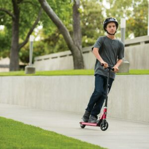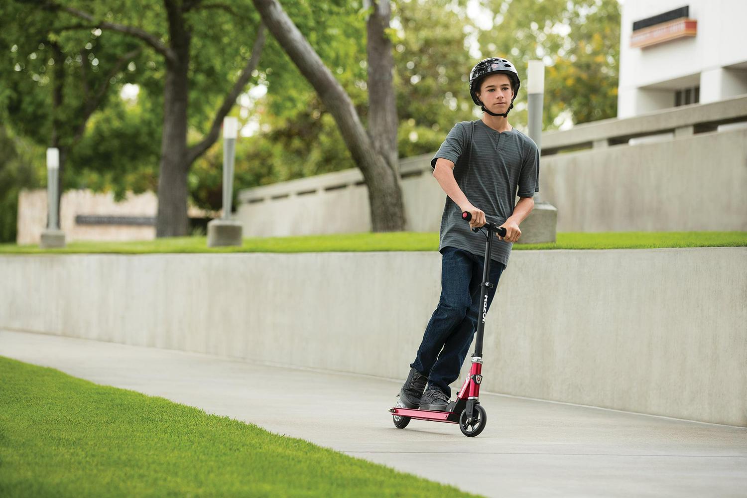 The Razor Power A2 electric scooter is your classic kick scooter that provides its own kick. Reimagined with a high-torque, lithium-ion powered electric hub motor, Power A2 is modernized and motorized and delivers a rattle-free ride at speeds up to 10 mph (16 km/h) for up to 40 minutes of continuous ride time. Compact, lightweight and easy to fold, it s the perfect way to add some excitement to your ride and make any cruise your favorite part of the day. The kick-to-start, high-torque, hub motor offers smooth, responsive electric power from the push-button throttle control without old-school alignment issues, chain or belt. Easy to ride, easy to love, the Power A2 is the perfect blend of style and excitement that makes a statement in motion or parked at your desk.