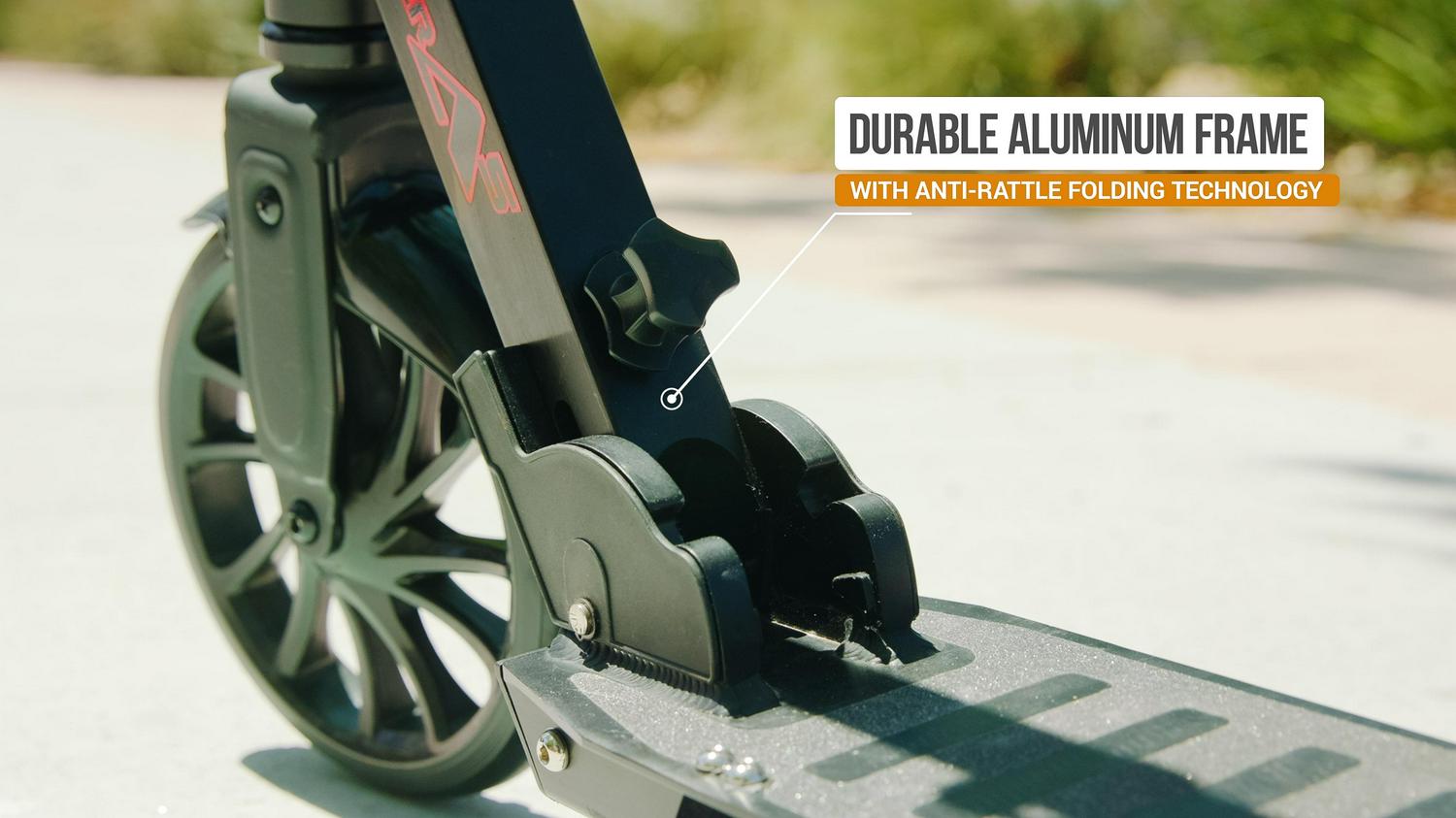 - Downtube: Patent-pending, anti-rattle, folding mechanism