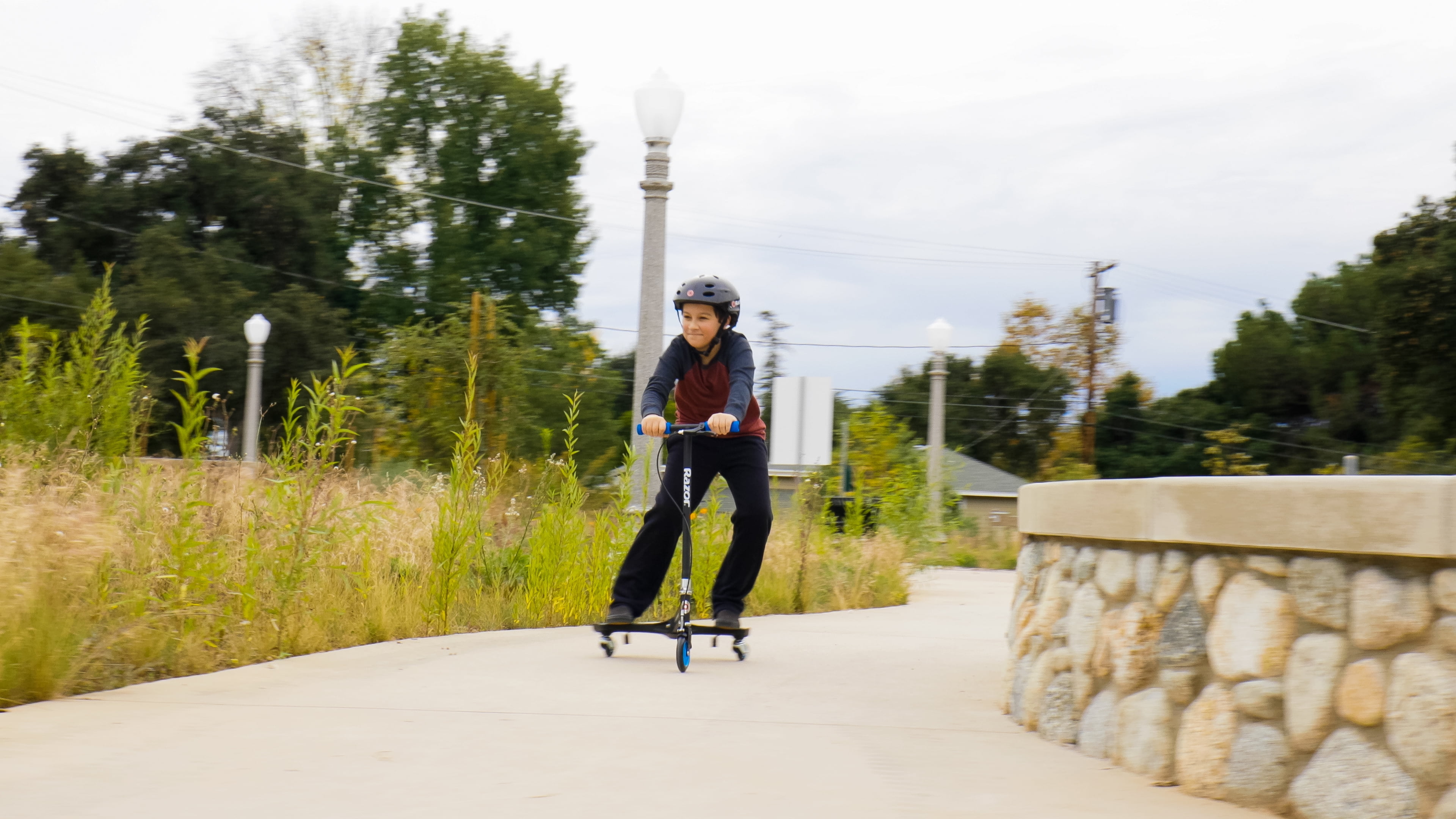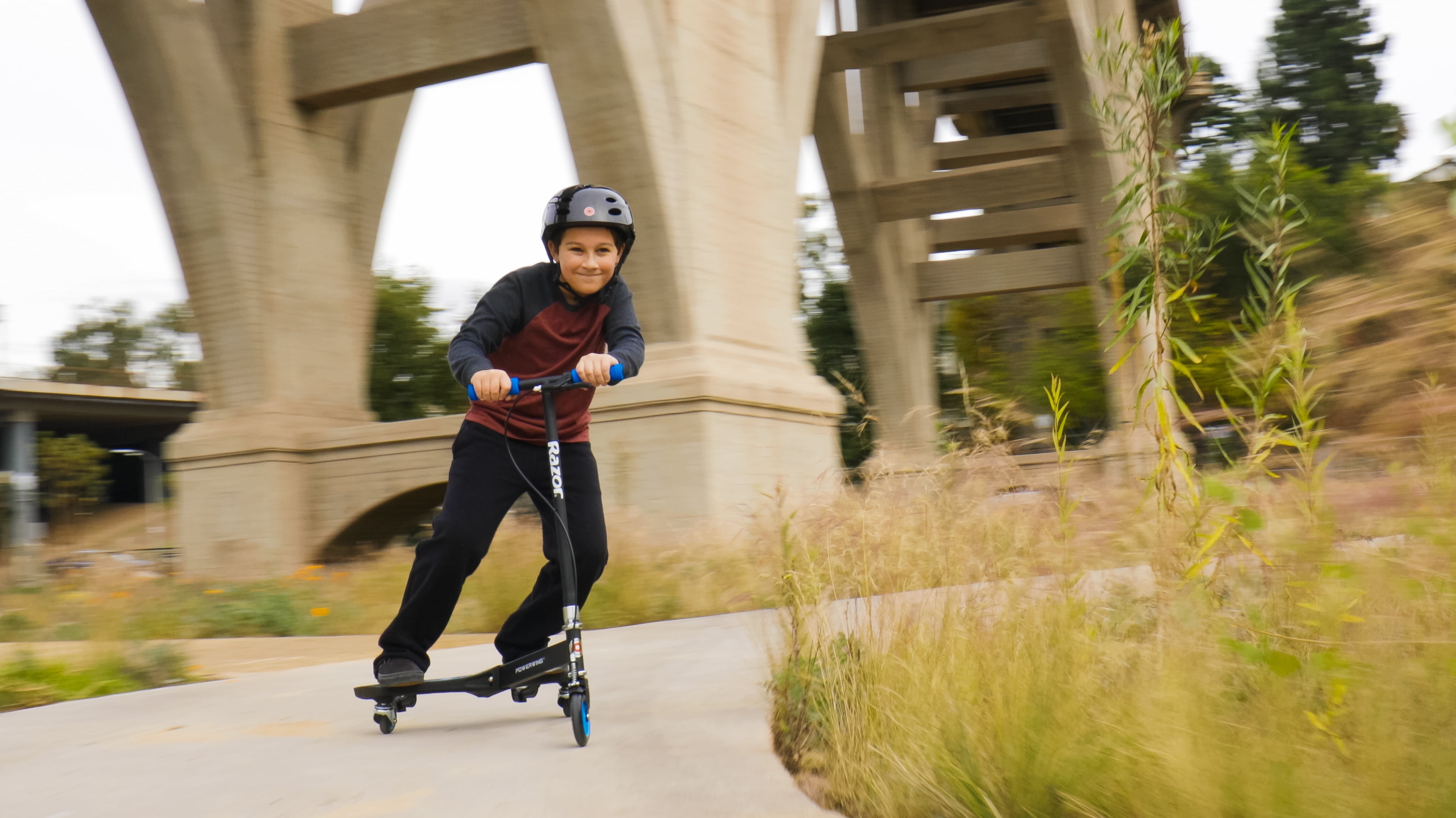 The Razor powerwing caster scooter helps your children to get out and be active when they play. It has removable stability bars for the learning stage. This kids scooter is different from other models because instead of kicking off the pavement you rock your body from side to side to move, which requires more action and provides a deeper workout. The dual-inclined casters allow you to go in any direction. This product’s foam grips make it easy to hold onto securely. The hand brakes help children to stop quickly and safely. Its urethane wheels can stand up to lots of regular use. It’s made with a strong steel beam and lightweight, high-tech polymer wings.