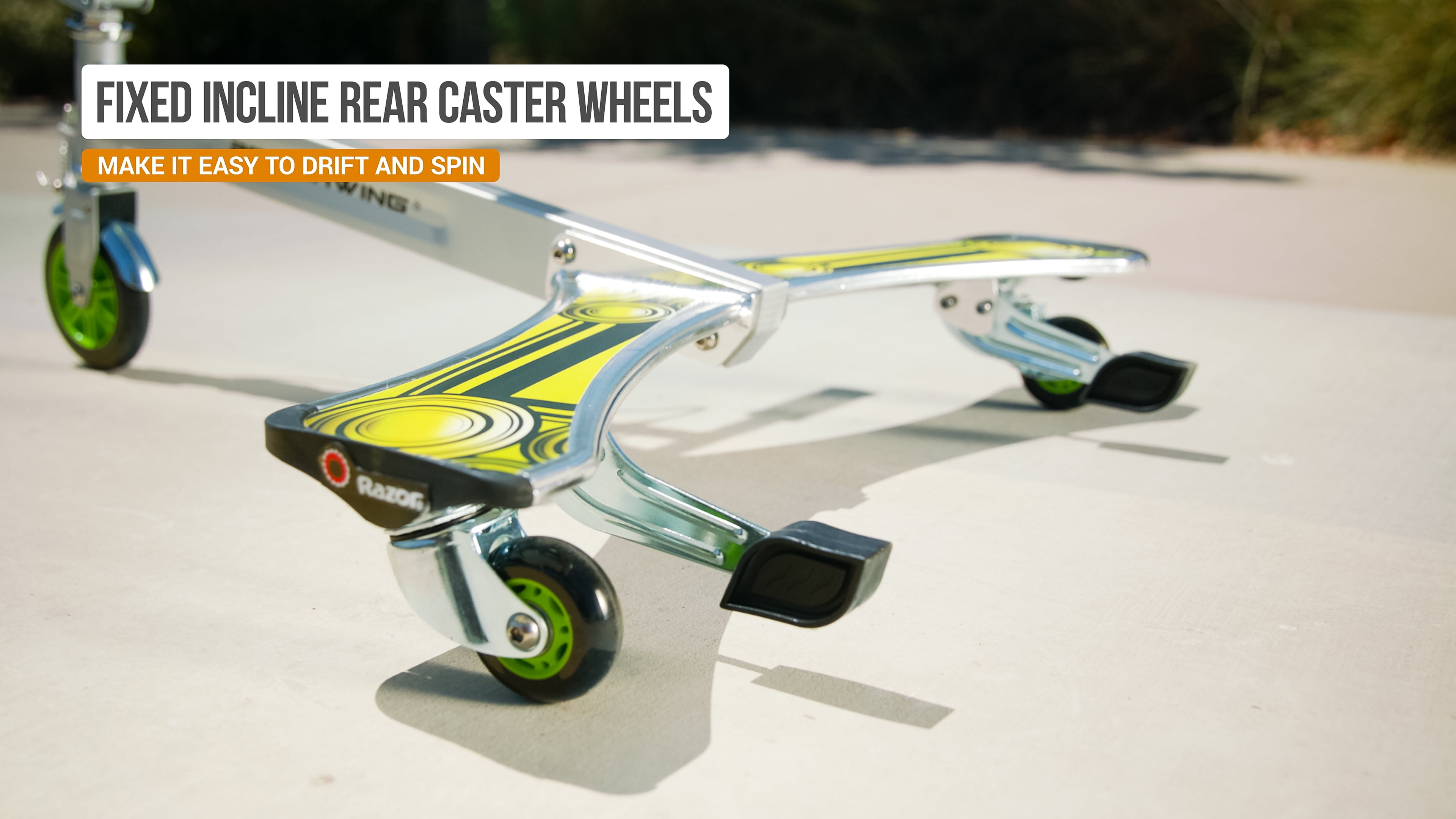 Razor PowerWing DLX Caster Scooter – Silver/Green, 3-Wheeled Drifting Ride-on for Child 6+