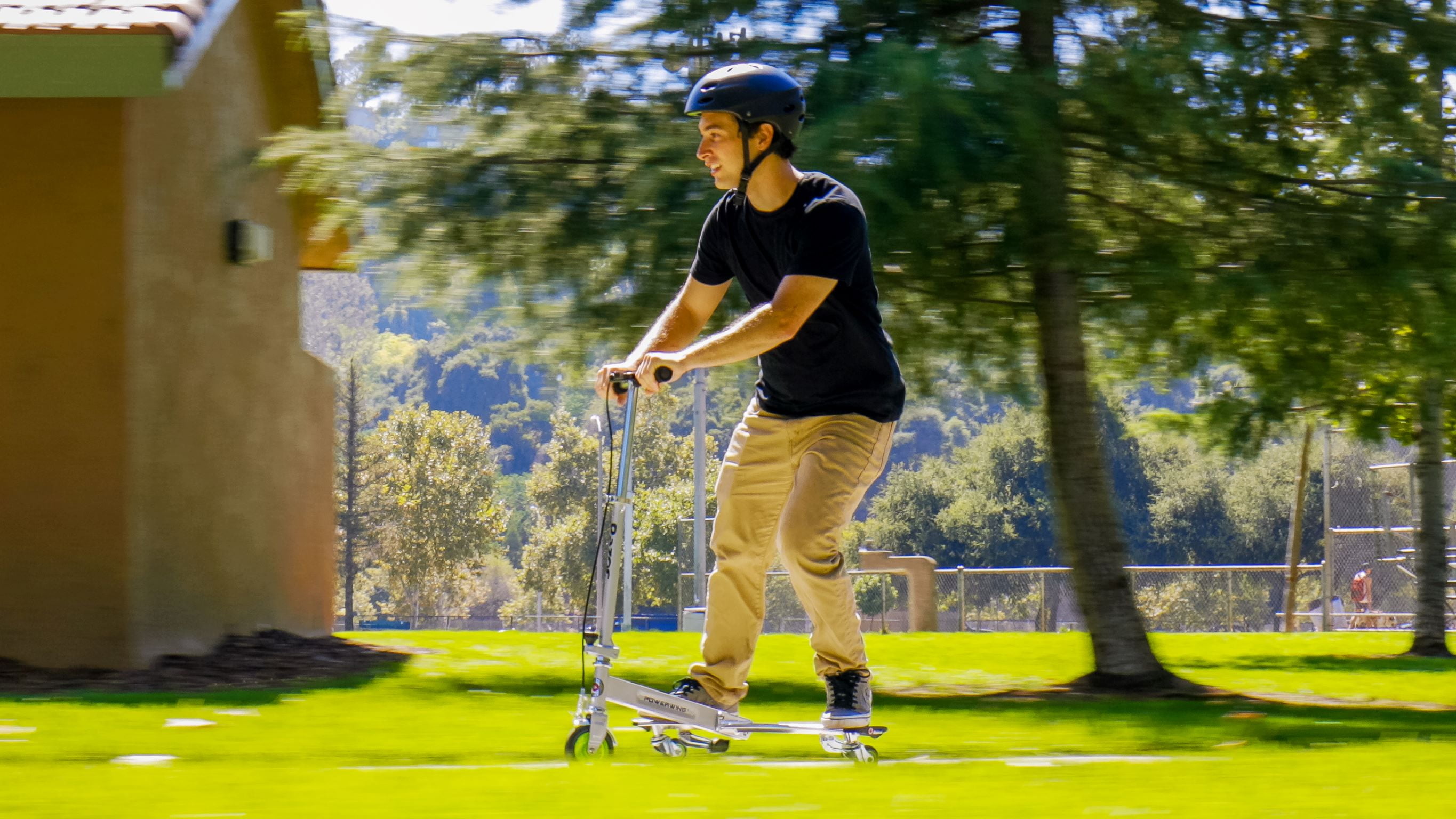 Wild Ride — The PowerWing DLX with inclined rear caster wheels delivers radical drifting and spinning for non-stop fun without pushing— side-to-side movement is the only propulsion needed. Easy Braking — The hand-operated front fender brake and foam grips on the handlebars provide comfort and enhance control. Quality Build — Built for long-lasting performance, Razor PowerWing DLX has a durable steel main beam frame with high-tech polymer wings. Designed for kids ages 6 and up, this three wheeled caster scooter can support riders up to 143 pounds (65 kg). Frame: Aluminum Grips: Foam Front Wheel: Urethane Rear Wheels: Inclined casters for drifting and spinning Brake: Hand-operated, front Age: 6+ Age Group: Child, Tween, Teen Max Rider Weight: 143 lb (65 kg) Some Assembly Required Assembled Product Dimensions: 27.3″ x 18.6″ x 31.6″ Assembled Product Weight: 11.3 lb