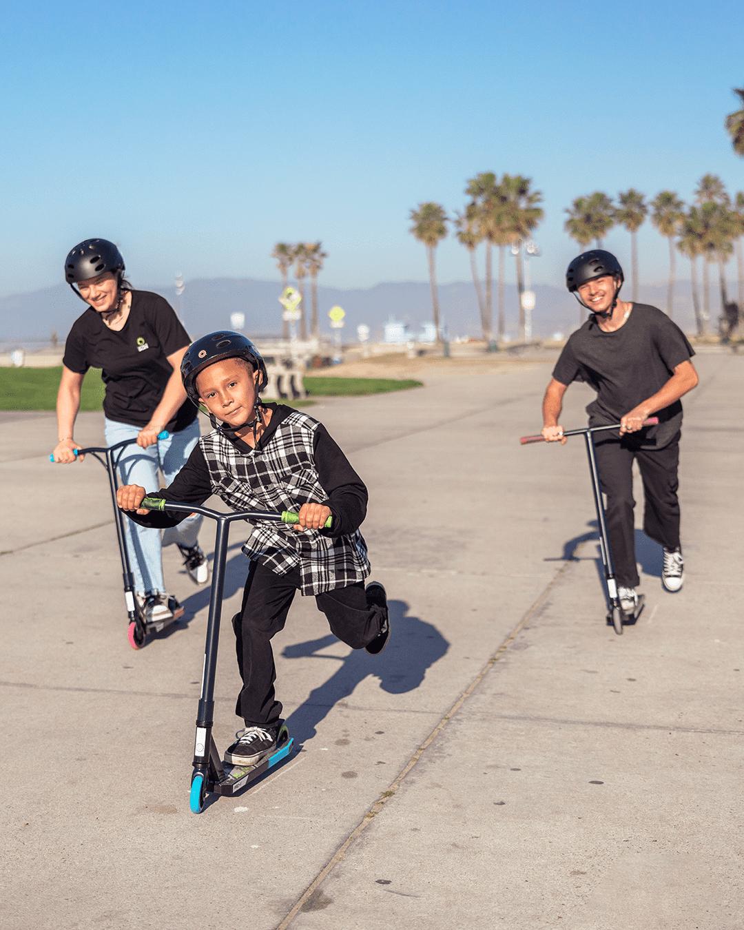 Providing top-quality rides for kid and teen riders, this scooter is big on fun and light on the wallet. The height and weight are expertly calibrated to accommodate middle and lightweight riders, maximizing performance as you practice and pull off trick stunts. You can customize it for your own unique look with mix and match grip tape, too. The Pro XX features all the essentials including a lightweight aluminum deck with boxed edges.
