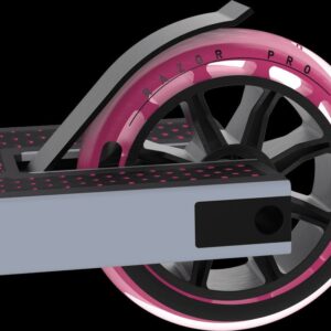 – Extruded Aluminum Deck with Boxed Edges: The gold standard for trick scooter decks; lightweight and durable! Boxed edge design provides strength and ease for trick riding.