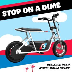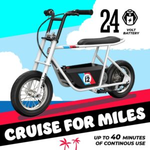 Razor Rambler 12 – White, 24V Electric Mini bike with Retro Style, Up to 14 mph, Wide 12″ Air-Filled Tires, High-Torque 250-watt Motor, for Ages 13 and Up, Unisex