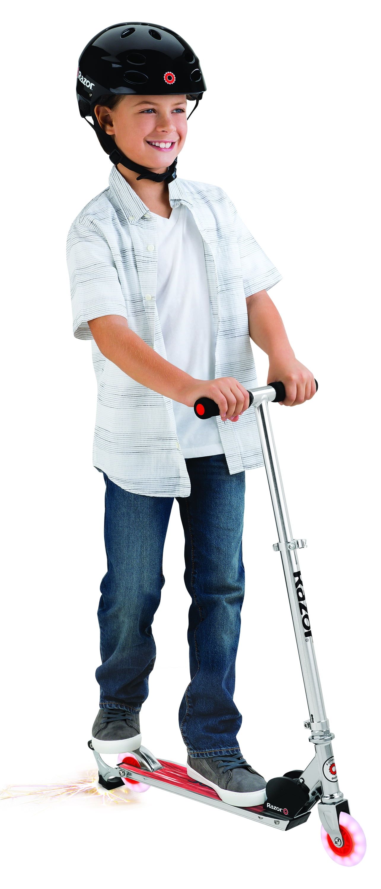 Razor Spark Ultra Folding Kick Scooter – Red, LED Light-up Wheels, Spark Bar, For Child Ages 8+