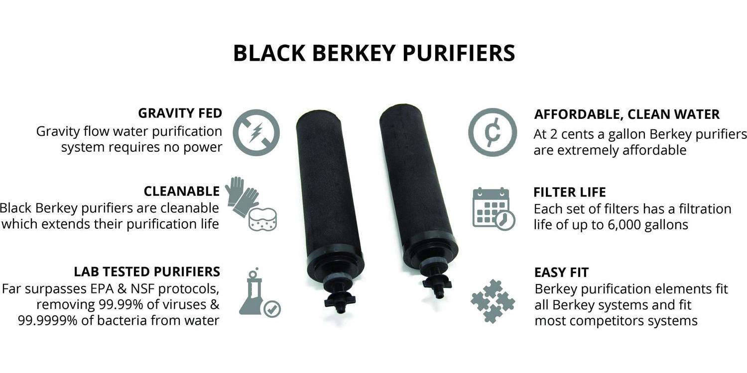 For up to 3,000 gallons of use, the RB4X2-BB Berkey Royal stainless steel water filtration system will virtually remove everything from VOCs from your drinking water. Ideal for any situation where an unexpected water emergency may occur, including outdoor situations where the only source of hydration is a raw, stagnant or otherwise compromised, water source. Effectively filters up to 8 gallons every hour. A perfect travelling companion or gift for that camper or adventurer on your shopping list. Genuine, OE system. Order the RB4X2-BB Berkey Royal stainless steel water filtration system from us today!