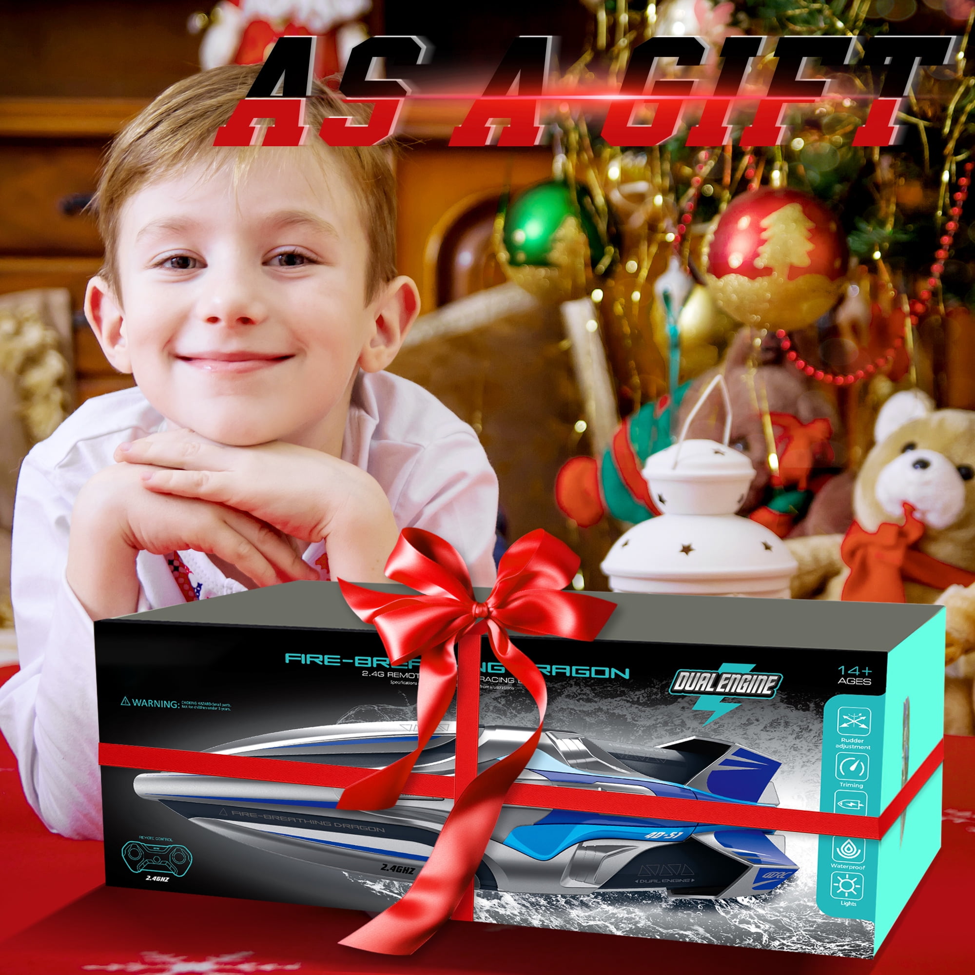 🚤TOPFOX High-Speed Remote Control Boat, a high-speed remote control boat loved by both adults and kids! 🎁Looking for the perfect gift for the remote control enthusiast in your life? Then don’t hesitate to choose this high-end brushless racing boat remote control boat, it will surely provide you with hours of entertainment and excitement. This is an amazing outdoor toy gift! 🏎Right-Angle Turns: This remote control boat reaches speeds of 35KM/H, and at such high speeds, it can almost make right-angle turns, performing amazing stunts! Responsive steering, full throttle control, and stepless speed adjustment make it easy to control, perfect for racing enthusiasts. ️ ⚡Super Endurance: Comes with 2×1500mAh high-capacity batteries, providing long playtime with just one charge! Let see the outstanding performance of this remote control boat!