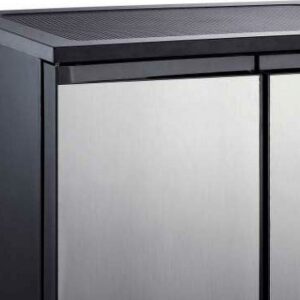 The 5.5 cu ft RCA Side-by-Side 2-Door Refrigerator/Freezer, Stainless Steel, makes it easy to keep your food fresh and cold. It has a fridge on the left side with 3.3 cu ft of space, which is ideal for holding food and drinks. This RCA refrigerator/freezer’s 2.2 cu ft ice-cold section is suitable for more long-term storage. The stainless steel exterior finish provides a modern look and makes it easier to clean. Its shelves are adjustable and removable so you can alter the inner space as you need. A clear vegetable crisper allows you to separate food by category for easy retrieval. This refrigerator’s full-range temperature adjustments give you the control you need to set up for different foods. A light inside the refrigerator lets you see food when you go down for a midnight snack.