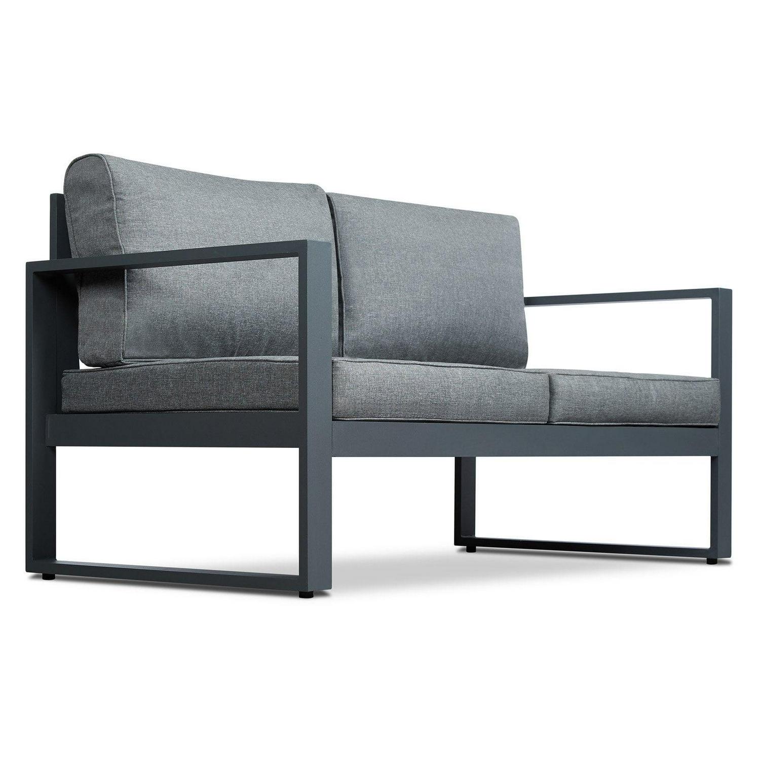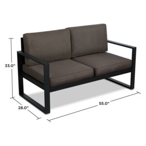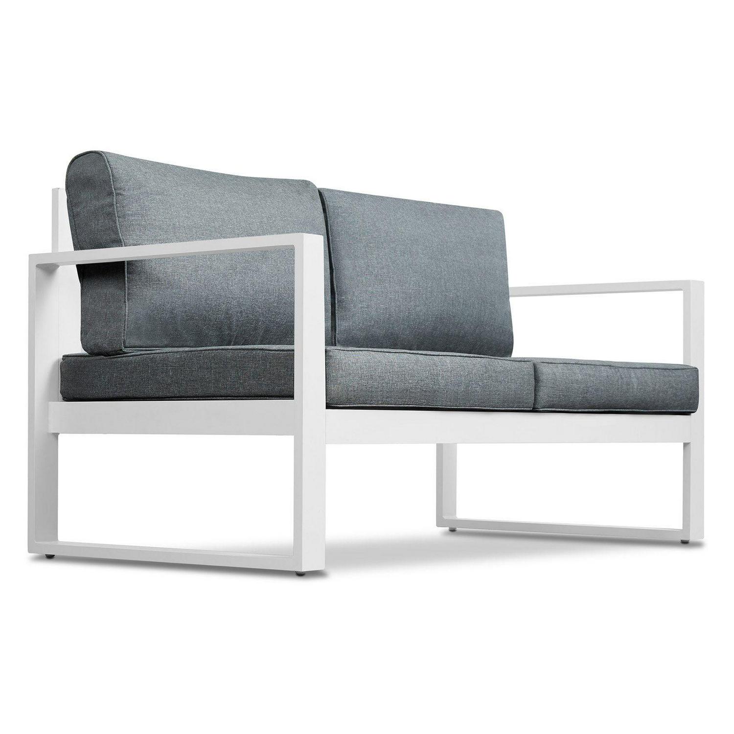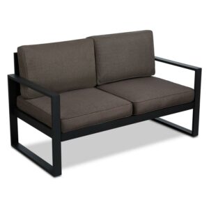 Sleek and modern, the Real Flame Baltic Outdoor Loveseat brings style and comfort to your outdoor space. The durable frame is crafted from aluminum metal and coated with powder to help prevent rust. Three-layer foam cushions offer exceptional softness, while the removable acrylic cushion covers are UV and mold resistant for years of enjoyment. Choose from a selection of available finishes to find the perfect piece for your patio.