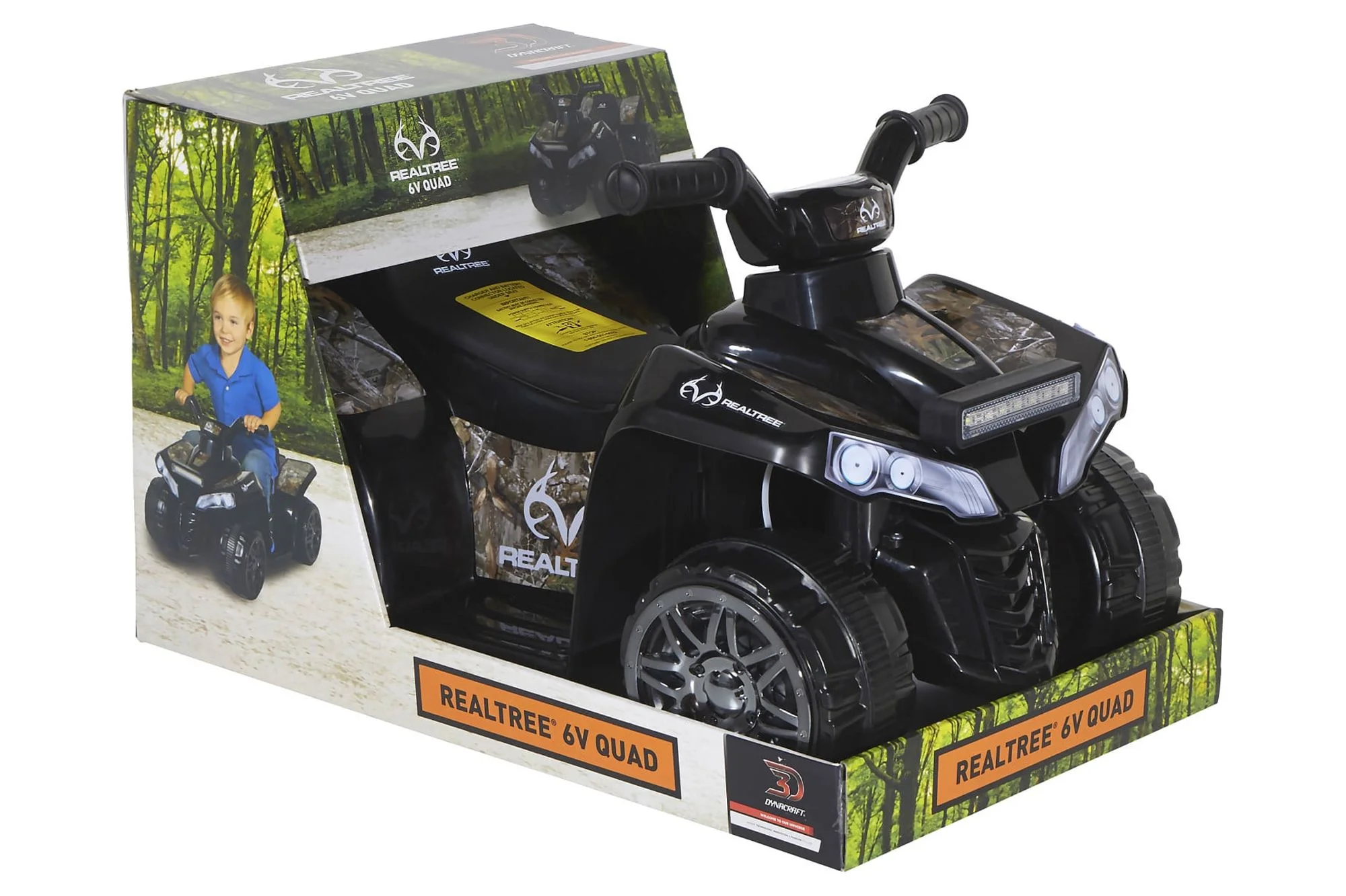 The 6-Volt Realtree Quad by Dynacraft is the perfect ride for your young outdoor adventurers! Young children can reach speeds of 2.5MPH using the easy foot pedal acceleration. Your little one will surely have the time of their life riding the tough 6-Volt Realtree Ride-On that features rugged style Realtree camouflage graphics and a working front light bar. Perfect for both boys and girls ages 18 months to three years.