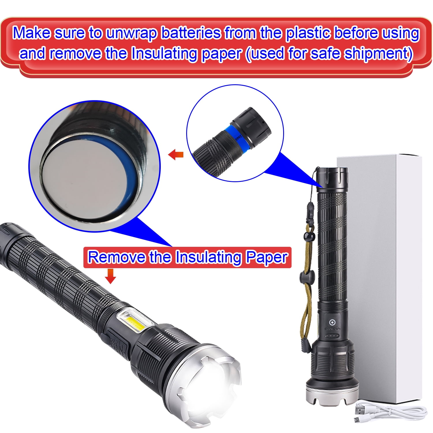 Rechargeable Flashlight High Lumens Zoomable Best Floodlight Spotlight Strobe Light Lanterns World’s Brightest Flashlight for Outdoor Emergencies Camping Fishing Power Outage Cars