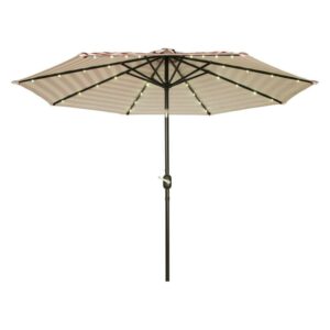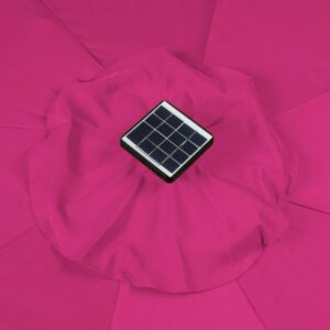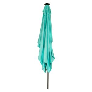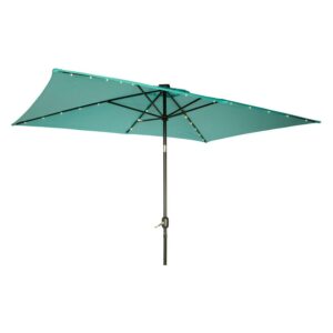 This rectangular solar LED patio umbrella measures 10′ x 6.5′ and provides plenty of shade on hot summer days. The canvas is 180G polyester so will stand up to the elements. Easy crank operation with a tilt option. Square solar panel at top means the LED lights last 9-12 hours (No electricity needed). Manufactured with superior quality by Trademark Innovations.