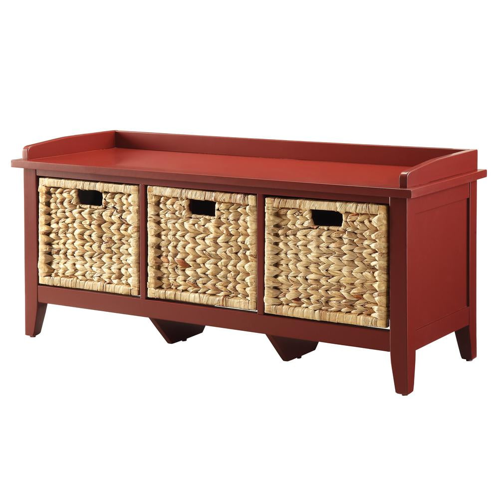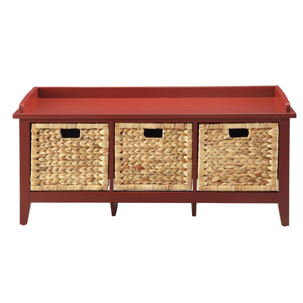 Rectangular Wooden Bench with Storage Basket White – Saltoro Sherpi Keep your entryway fresh and organized with this lovely wooden storage bench featuring three spacious brown rattan baskets like drawers. The low-profile design and crisp finish make for charming windowsill seating. This bench is also perfectly suited to update the bathroom dressing area or living room. From small spaces to wide and roomy ample interior storage keeps messes tucked away.