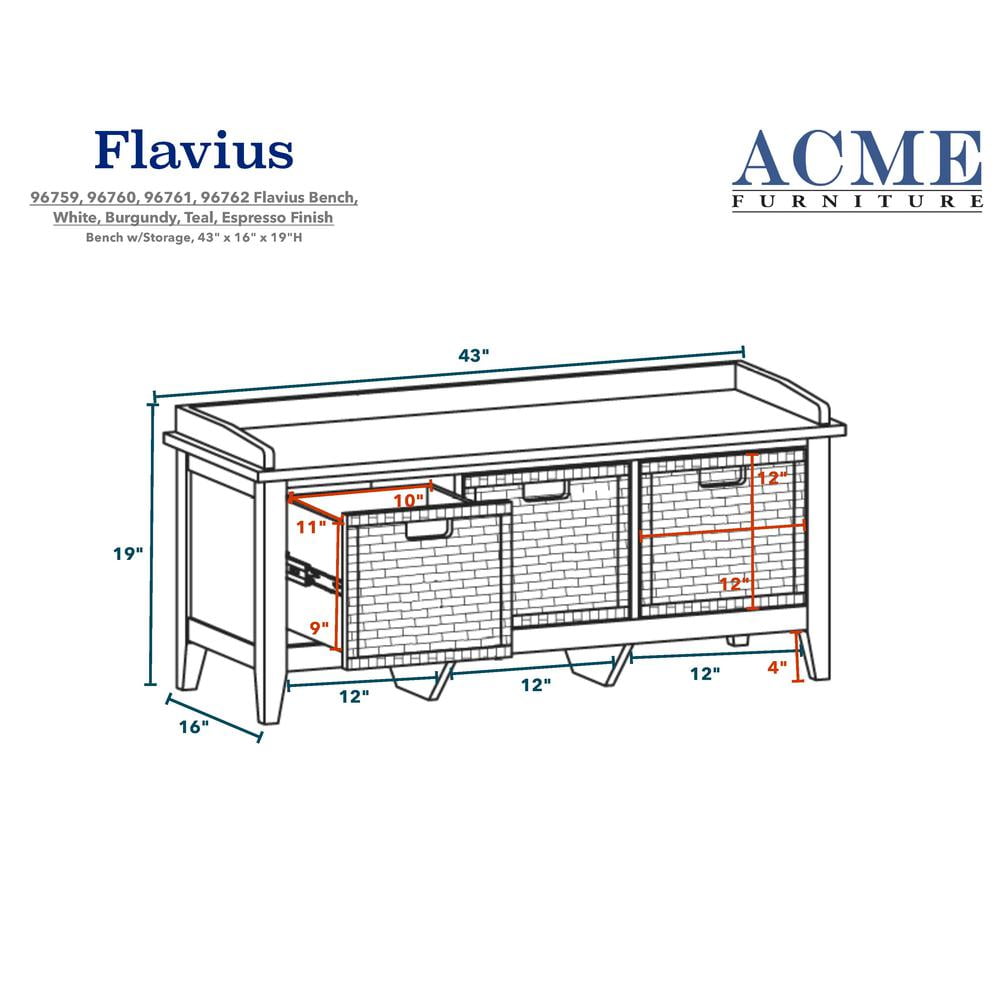 ACME Flavius 3-Drawer Wooden Storage Bench in White