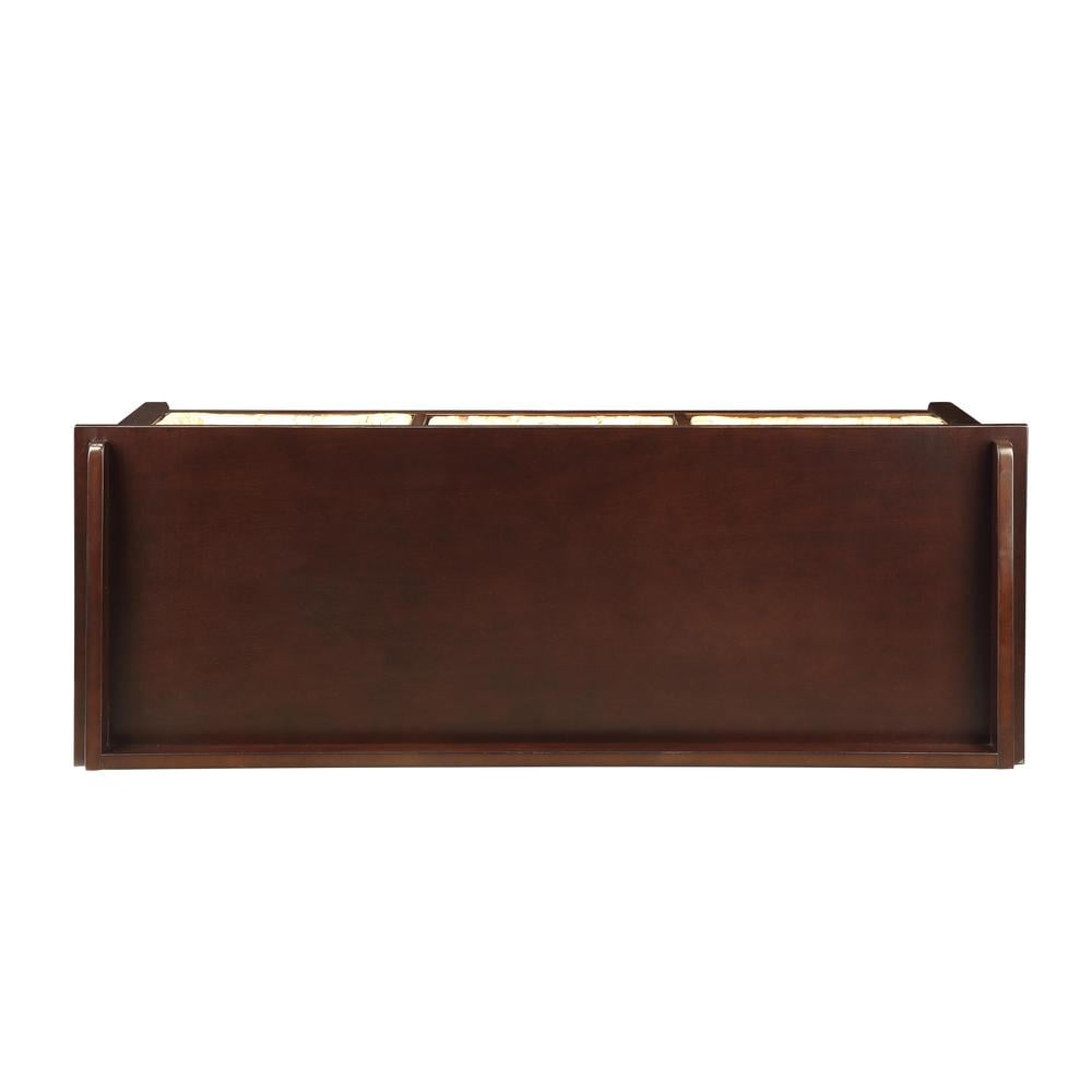Dimensions: 43L x 16D x 19H in. Constructed of engineered wood and wood Your choice of available finish 3 drawers for storage Transitional style Wicker-style drawer fronts add texture Backless style Click here to view the assembly guide