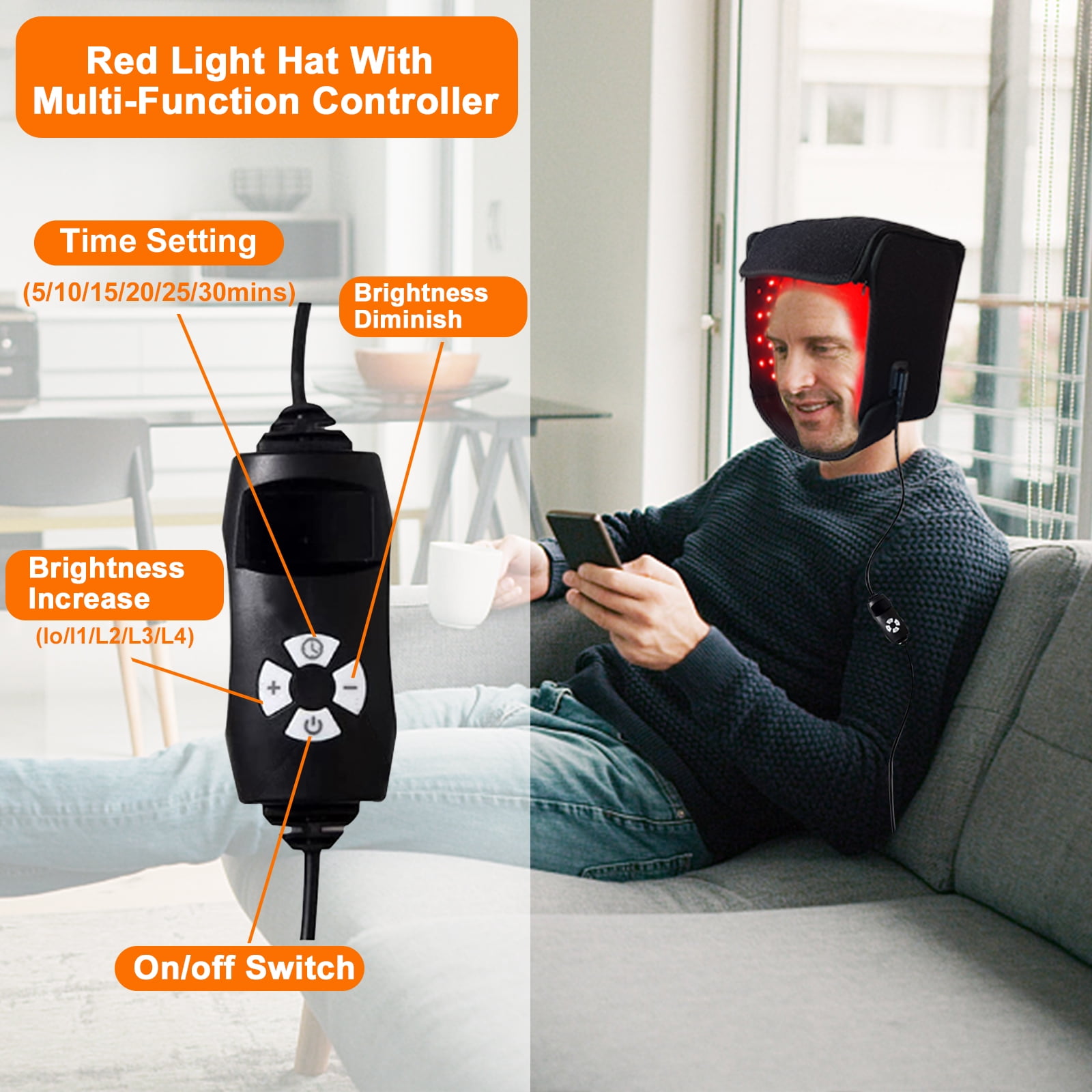 Repair hair follicles and scalp: The product upgrade uses155 pcs 3-in-1 lamp beads, each of which consists of two 650nm and one 880nm small lamp beads. Various data show that different wavelengths of light can meet different light transmission requirements. 650nm red light can accelerate cellular metabolic response, reduce inflammation and accelerate healing. 850nm near-infrared light has a particularly strong penetrating ability, which can penetrate deep into the tissue, promote blood circulation, repair the scalp, reduce hair loss, and is safe and reliable without side effects. Upgrade multifunctional: The upgraded controller is simple and beautiful in appearance and easy to operate The controller can adjust the brightness of the light source in 1-5 gears, and long press the controller to turn on the flickering function, which can meet your different needs. With a timing device of 10-90min, you can relax and fall asleep after setting the time without worrying about the instrument working for a long time. High Quality and Lightweight: Low light decay and long service life. The product uses skin-friendly materials and is designed to be a foldable hair growth treatment device. It is portable and lightweight, with a gross weight of only 200 grams, which is convenient for you to carry on travel without any burden. Quick Treatment: Recommended treatment time is only 30 minutes, 3 times a week (every other day) [Red Light Therapy Device]:650-670nm Red lights is especially effective for increasing collagen and blood circulation. It can generate follicles, which physicians believe can be used to enhance the results of hair loss treatments. 880nm Infrared light has a strong ability to penetrate deeper into tissue and scalp, enhancing hair follicle metabolism and stimulate the nutrition absorption of hair. [Optical design of convex]:The LED lamp inside the red light therapy hat adopts convex lamp beads, which can concentrate the light and make the light spread in a straight line. The concentrated light can make the red light therapy more precise to the root, which can reach the root of 1-3mm. It can speed up cellular energy metabolism. [Portable with Auto Timer]: This portable therapy cap comes with new integrated digital control and 20-min auto shut off timer system. It can be easily folded, making it easy to carry and place. The light bulbs are flat so you can not feel it when wearing. It is a perfect solution for home use, enjoy your light therapy anytime and anywhere!
