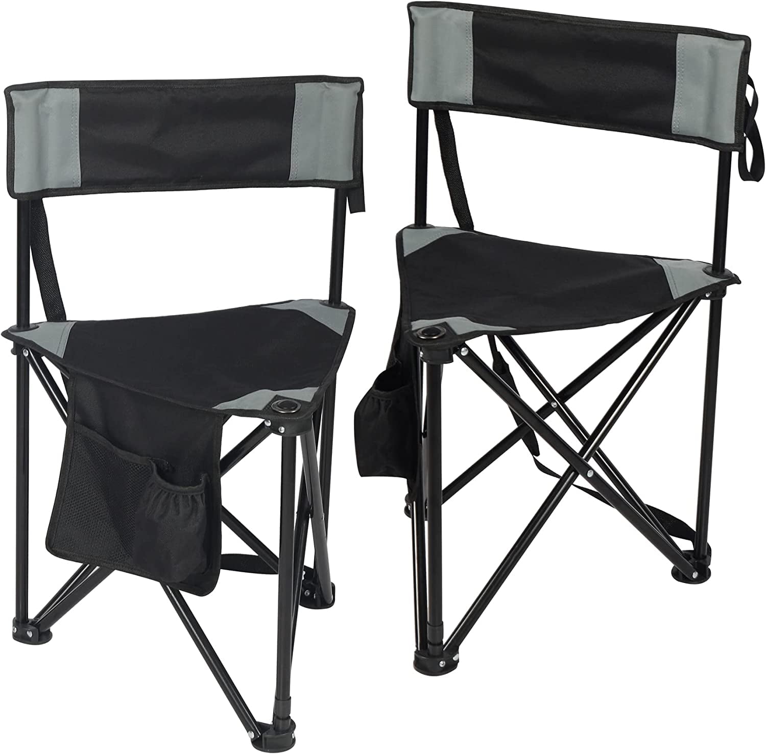 REDCAMP 2-Pack Tripod Chairs Folding, Lightweight Portable Tripod Seat Stool with Back, Small Camping Chairs for Adults Outdoor Backpacking, Black