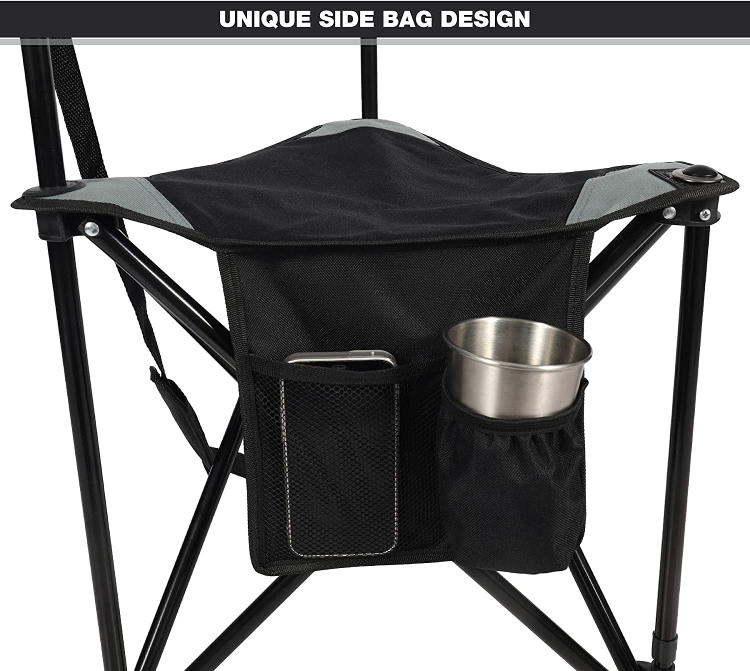 Designed with a side pocket, consist of a cup holder and storage bag Made of wear-resistant Oxford fabric, durable enough for long last term Lightweight & portable, convenient to carry around with the velcro shoulder strap The bottom of feet are anti-slip, improve the reliability during use Easy to be installed or folded up within 5 seconds Great for Hiking, fishing, family camping, picnic, RV traveling, hunting blind, sidelines, festivals, sporting events, beach and other outdoor activities Overall size 18″x18″x28″, seat height 16″, folded size 4″ x 27.6″, each weight: 3.5lbs, hold up to 225lbs