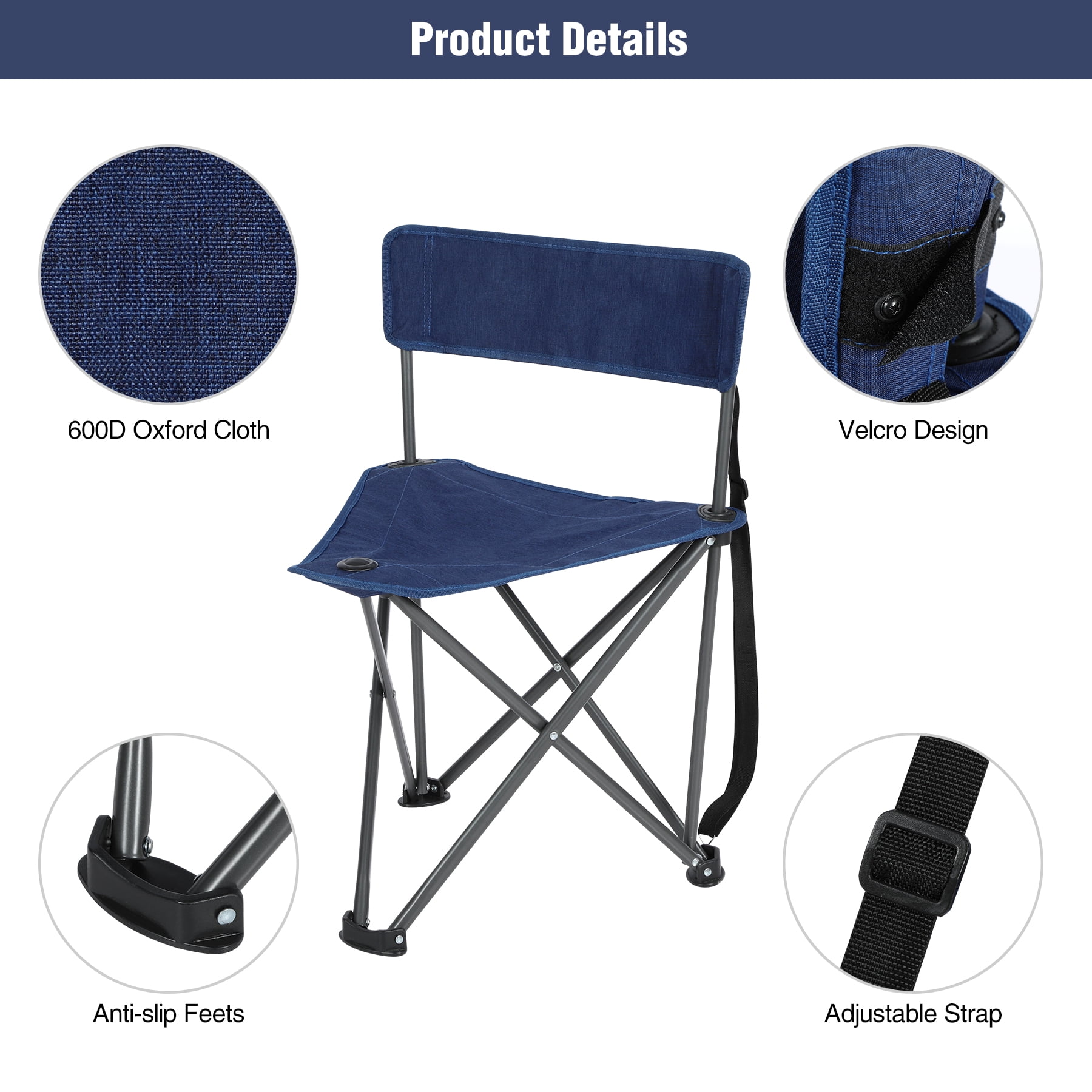 REDCAMP 2-Pack Tripod Chairs Folding, Lightweight Portable Tripod Seat Stool with Back, Small Camping Chairs for Adults Outdoor Backpacking, Blue