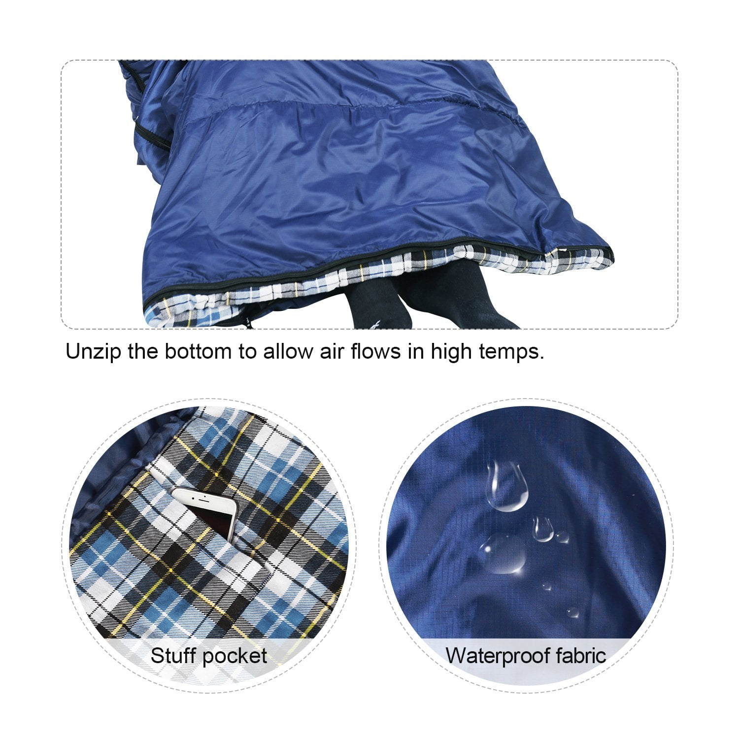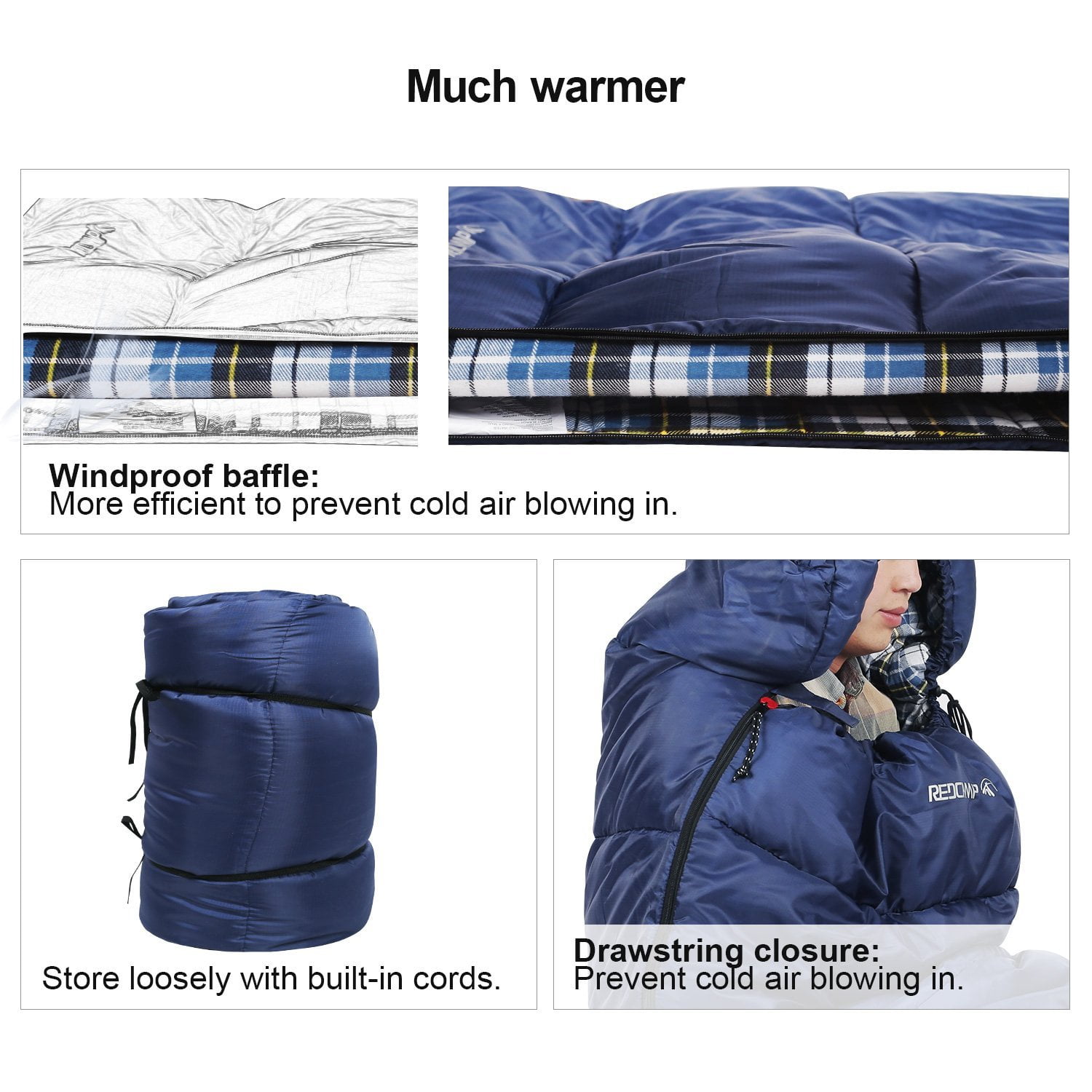 REDCAMP Flannel Sleeping Bag for Adults, Comfortable Cotton Sleeping Bags for Camping with Detachable Hood,Blue