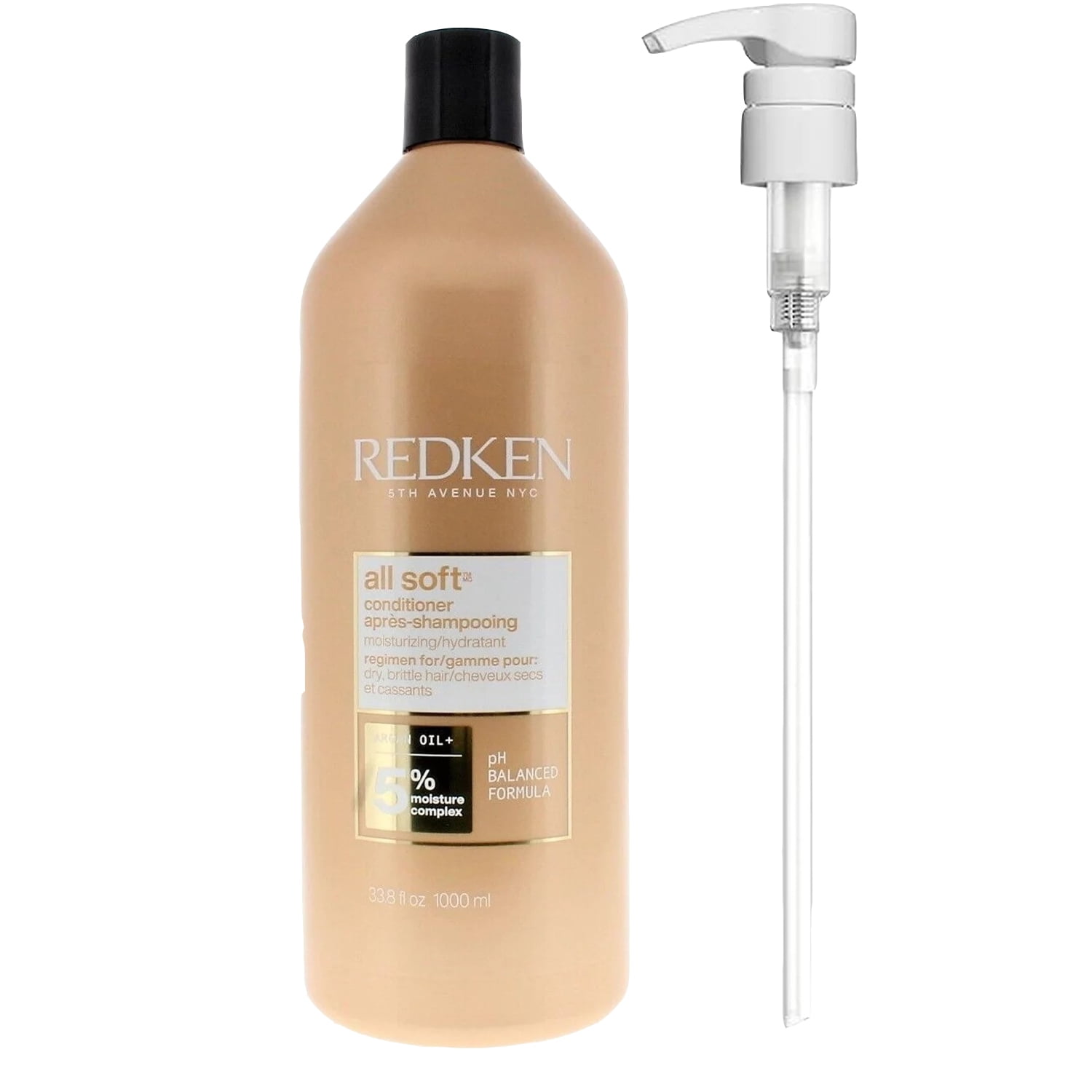 Redken All Soft Shampoo and Conditioner Set for Dry Brittle Hair 33.8 oz Each with Pumps