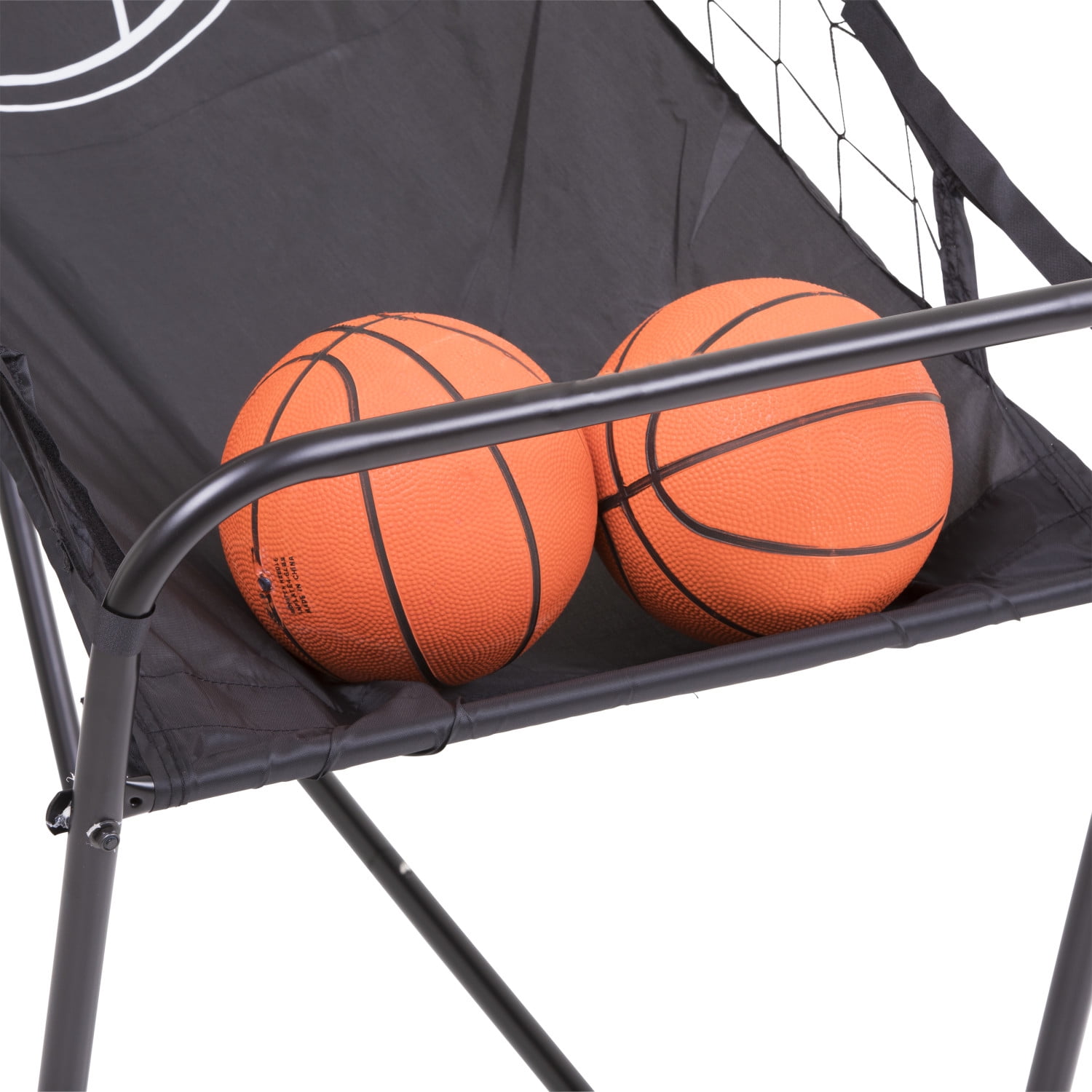 Challenge friends to an arcade-style shootout basketball game Quick Connect easy-to-assemble frame sets up in minutes Black powder-coated durable steel frame is built to last Shootout features compact fold-up design for easy storage Includes two miniature basketballs and an air pump with needle