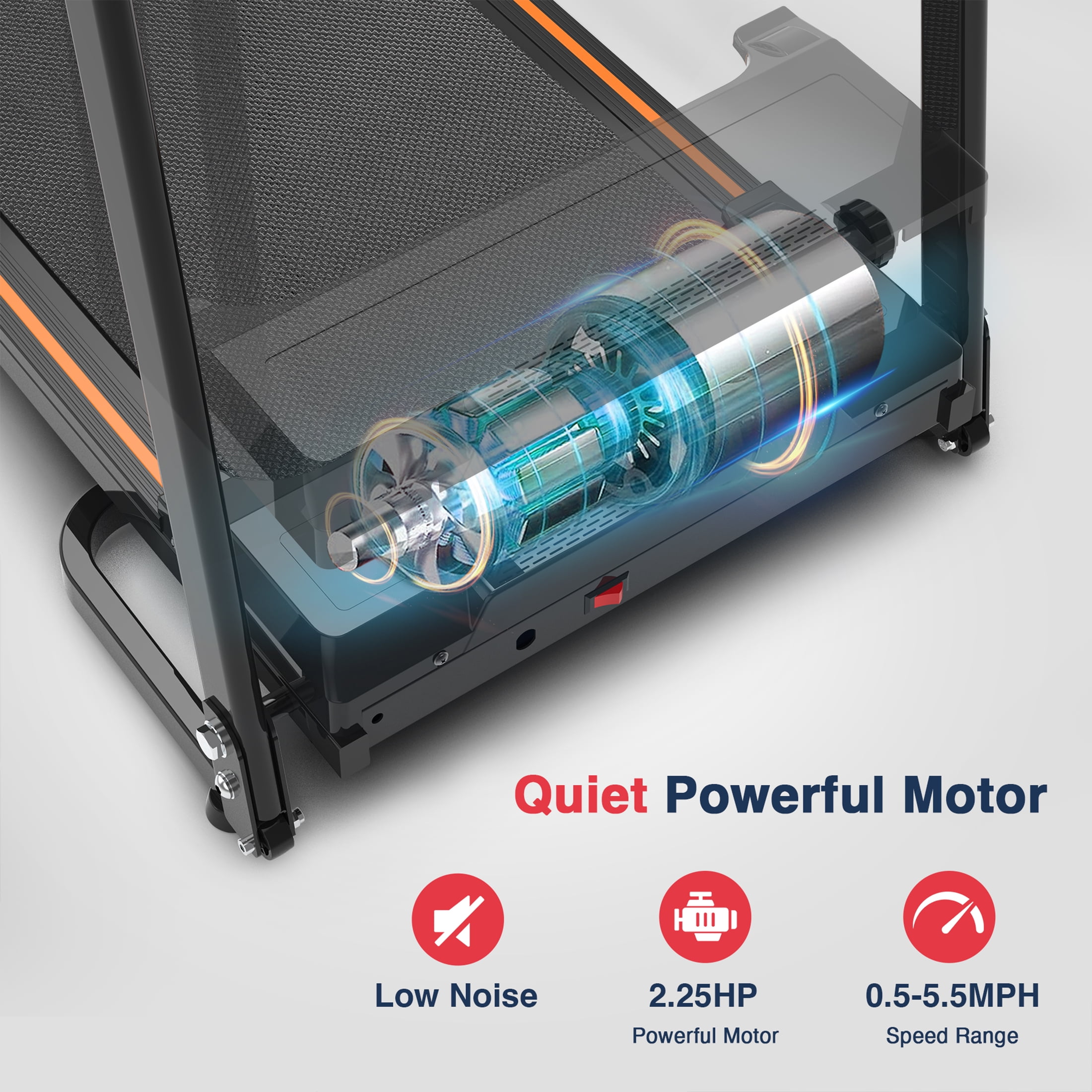 Features Safety Assurance & Extended Handrail–Safety is paramount when it comes to elderly users of the treadmill. We’ve designed extended handrails for stability, and in case of a fall, our safety key disconnects power immediately. This treadmill is perfect for seniors who prioritize safety during their workouts or those with balance concerns. No More Excuses for Skipping Exercise–With our walking treadmill, you can say goodbye to weather-related excuses for not exercising. Whether rain or shine, you can walk at home every day.To protect your knees during workouts, we’ve equipped this treadmill with a six-layer thickened running belt and a super shock absorption system. User-Friendly LCD Display–Seniors/convalescents can effortlessly track progress with an easy-to-read LCD screen showing distance, calories, heart rate, and speed. Simple buttons and 12 preset modes for ease of use. You may also need a place to put your phone and water cup during exercise, the holder has been designed for you. Robust Motor & Sturdy Build–Enjoy smooth walking or jogging with a powerful 2.25HP motor, offering quiet operation and precise 0.1mph speed increments. Supports up to 300 lb. Ideal for Home Use–Easily remove the armrests for versatile use, fold it for space-saving, and move it effortlessly with transport wheels. Compact when folded. Perfect for home fitness. Maintenance Lubricating under the running belt will ensure superior performance and extend its life expectancy. After the first 25 hours of use (or 2-3 months) apply some lubricant, and repeat for every following 50 hours of use (or 5-8 months). Specification Color: Black Dimensions: 51*25*46 inch Net weight: 68.3 lb Running Belt Size: 41.5*16 inch Speed: 0.5-5.0mph Voltage: 110V Max Capacity:300 lbs What’s in Box 1 x Long Handrails Walking Treadmill 1 x L-Wrench 2 x Pin 1 x Silicone oil