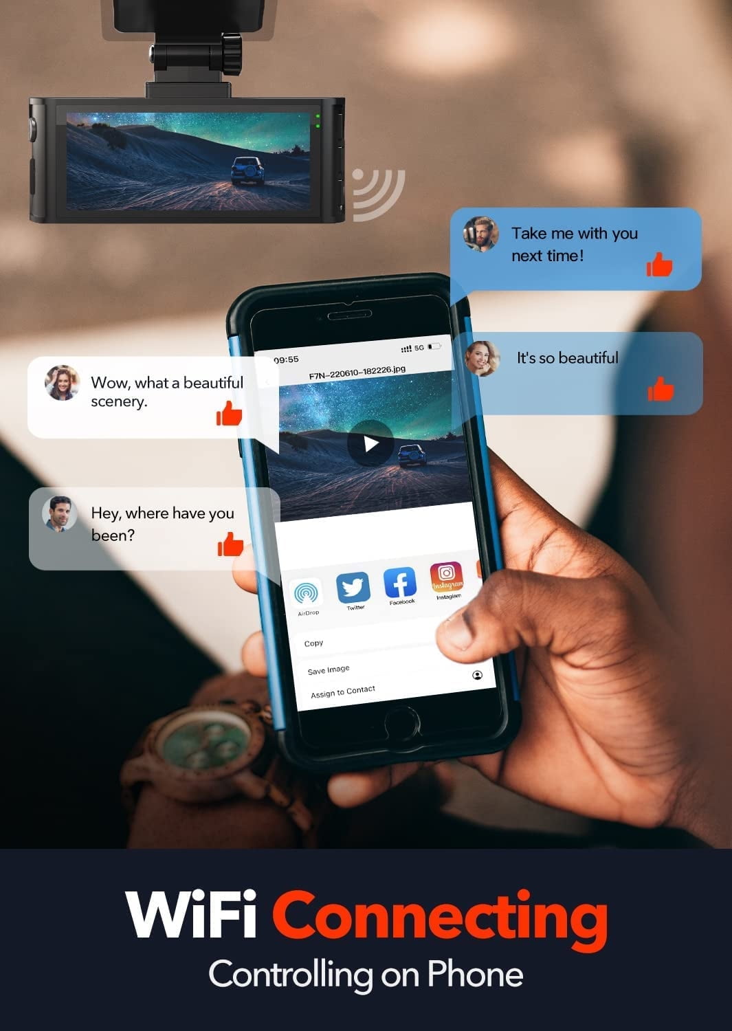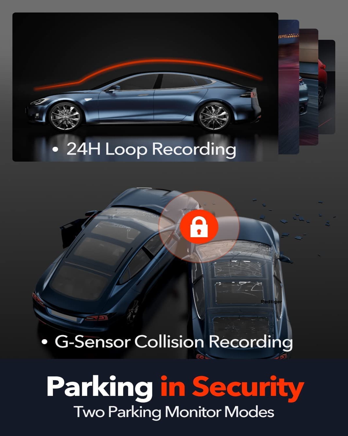 This car dash camera offers Wi-Fi connection & smart app control, WDR technology for enhanced super night vision, Dual Dash Cam channel wide-angle view with a waterproof backup camera. Dash Cam Front and Rear has a G-sensor emergency lock, loop recording, 24H parking monitor, and GPS tracking with speed. With a super capacitor and extreme temperature resistance, dash cam supports a max 256GB card (not included),and the weight of this dash cam is 1.34lb. Easily output your footage. Contact REDTIGER support for assistance.